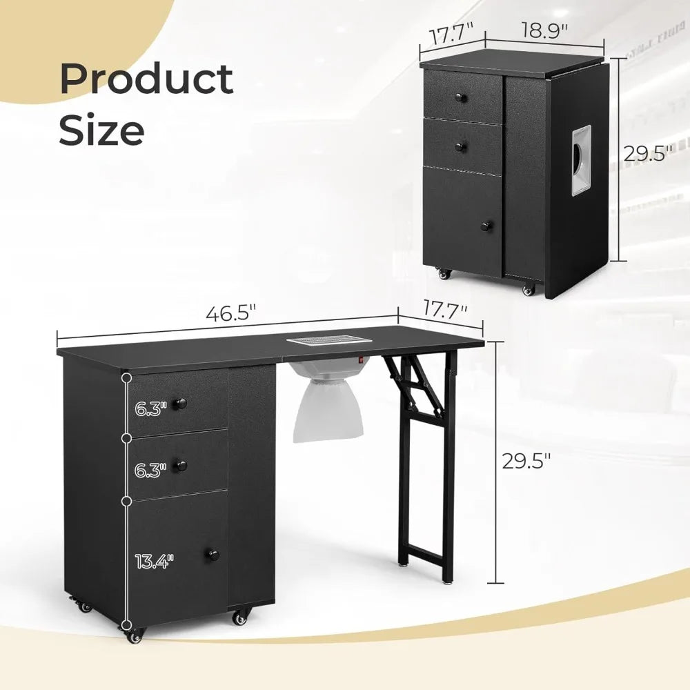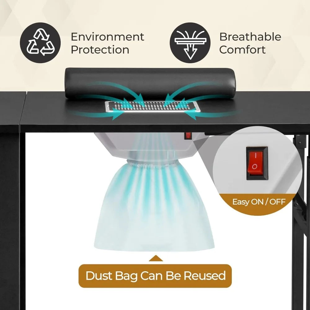 Foldable Manicure Table with Dust Collector for Nail Salon Home Use