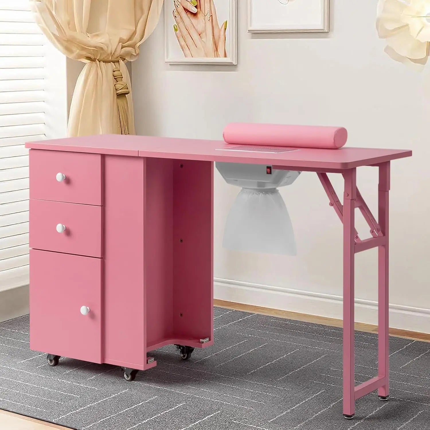 - Folding Design for Space Saving: Easily foldable, this manicure table is perfect for small spaces. Store it away conveniently when not in use to keep your area neat and organized.