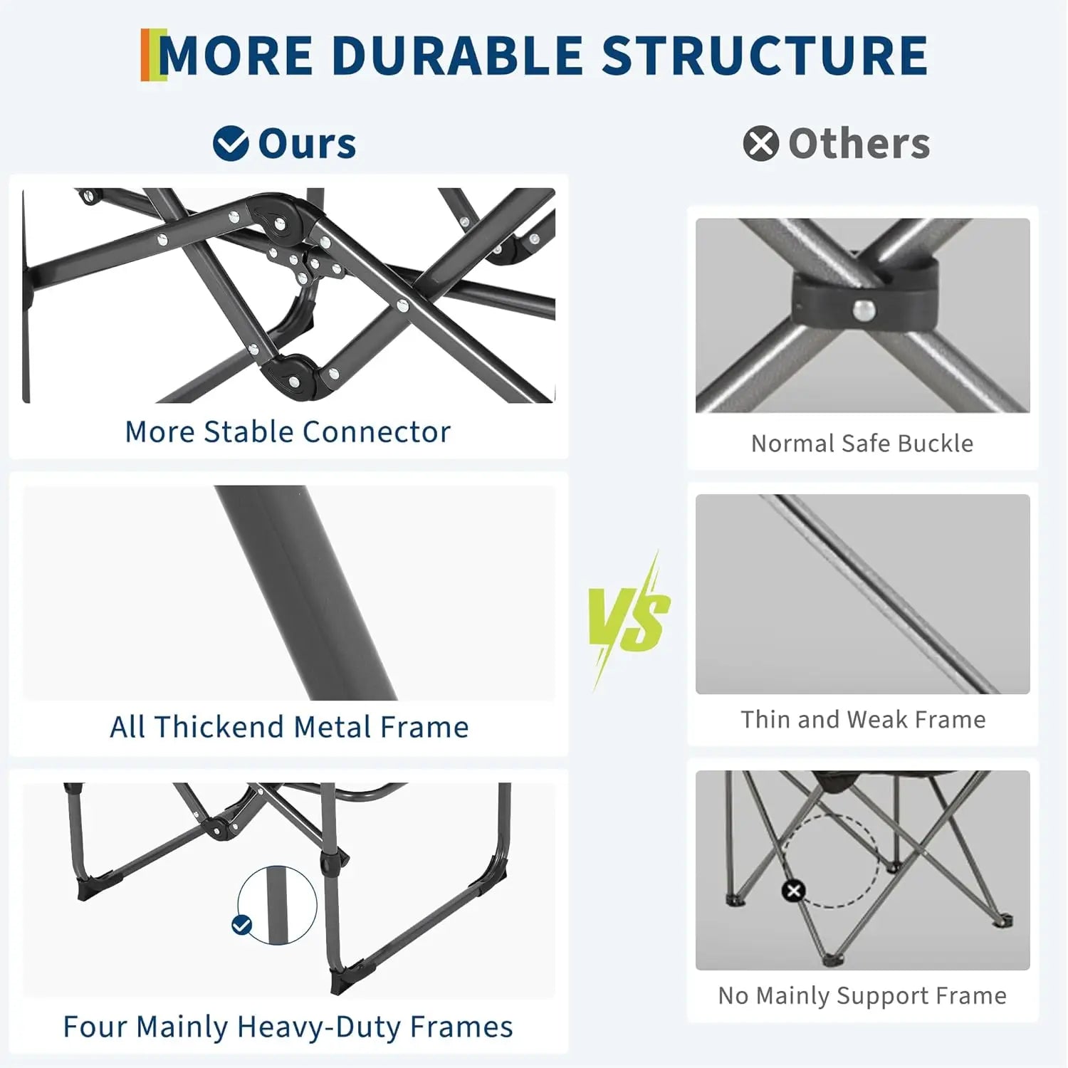 Friendly Reminder: To ensure safety, please make sure the chair is fully unfolded and locked in place before use. Store in a dry place to extend its lifespan.