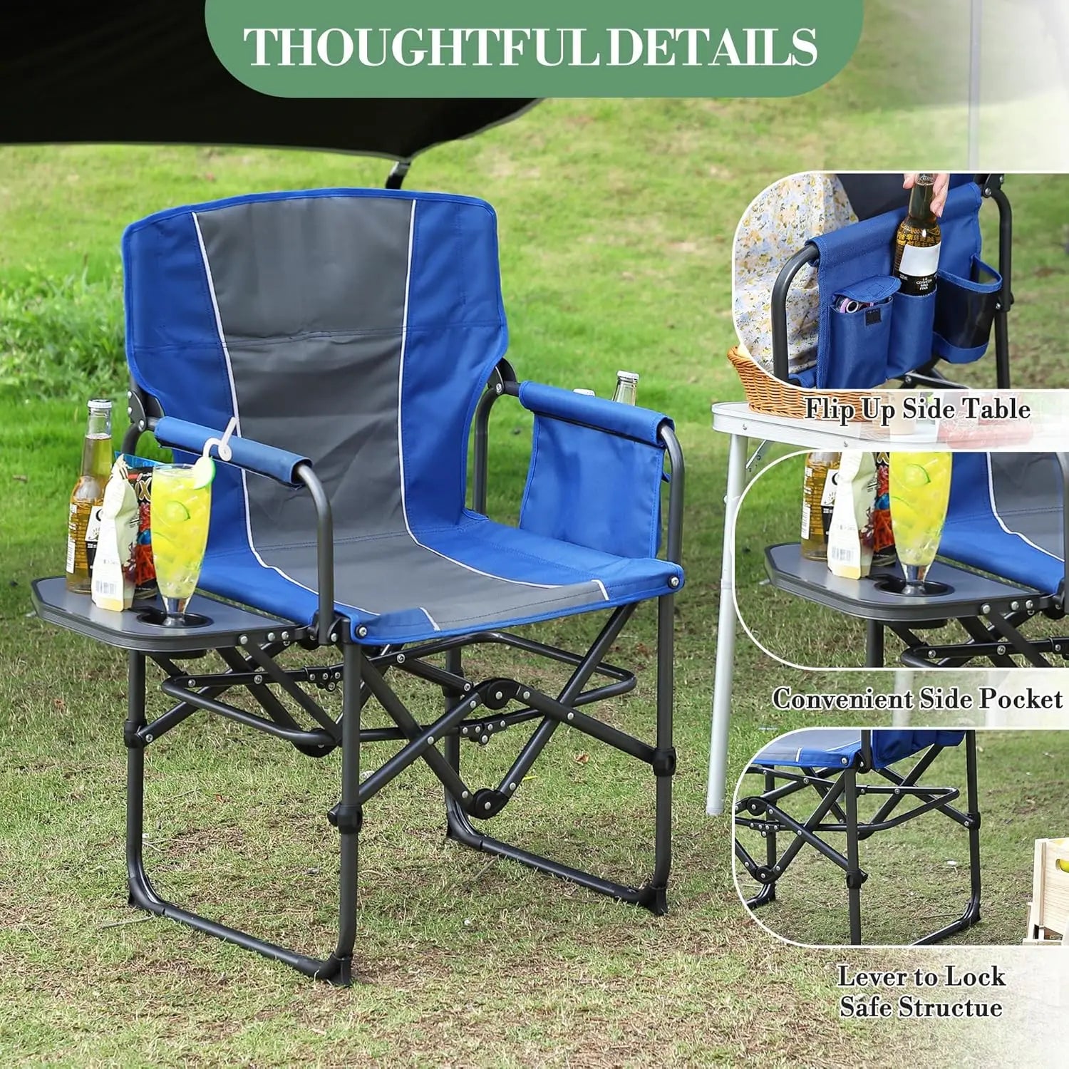 Folding Camping Chair with Side Table Pocket and Beverage Holder for Outdoors