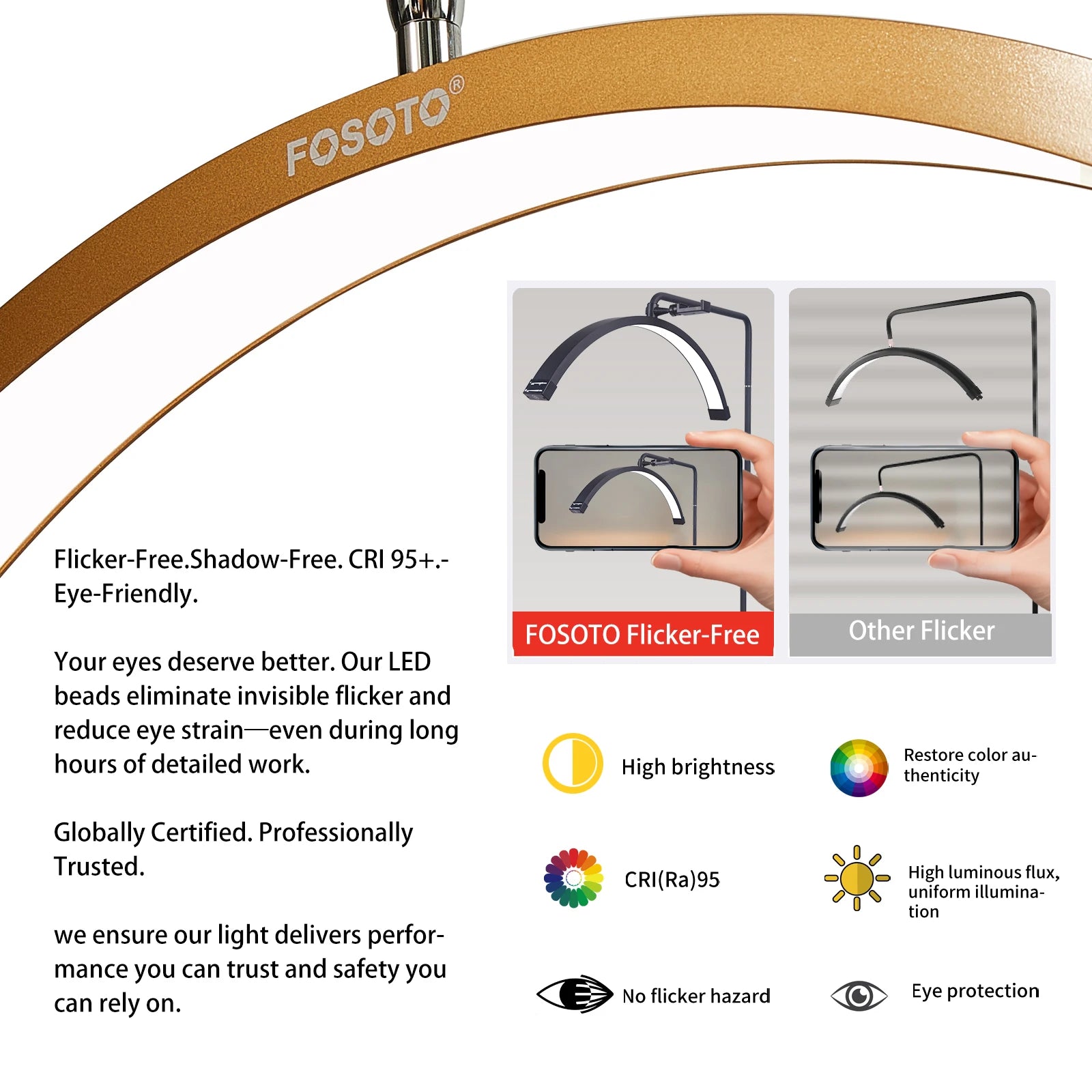 Transform your workspace with the Fosoto Half-Moon LED Video Light, designed specifically for beauty professionals. This innovative lighting solution provides shadow-free illumination, ensuring your work is always showcased in the best light. Perfect for lash extensions, tattoos, and live streaming, this versatile light helps create stunning results every time.