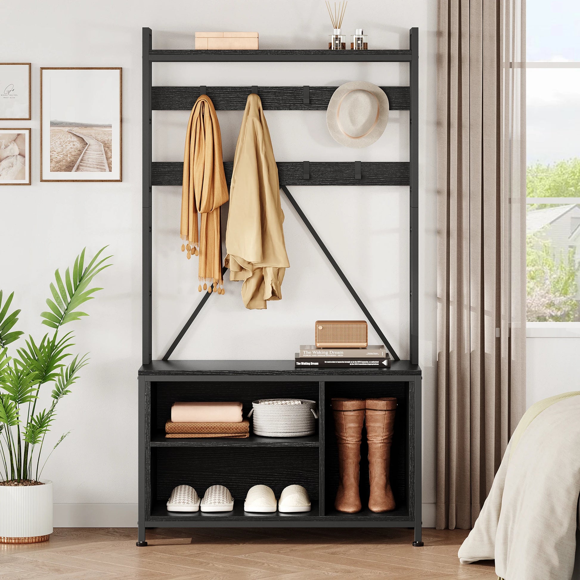 Hall Tree Entryway Bench Coat Rack Shoe Storage Industrial Style