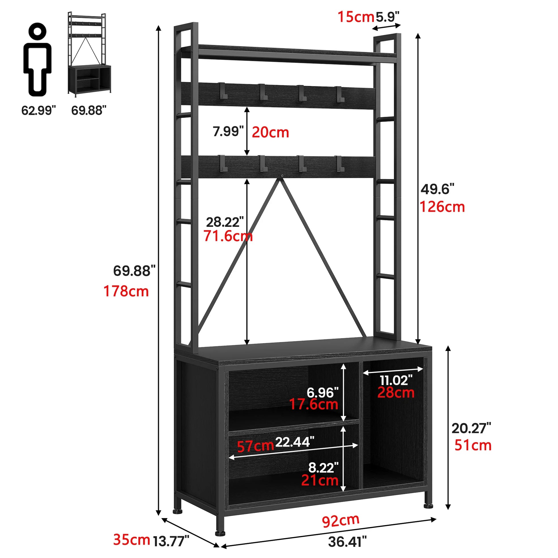 Introducing the Ljustra Hall Tree Tall Entryway Bench, your ultimate solution for a stylish and organized entryway. This industrial-style bench combines functionality with modern design, making it perfect for any home.