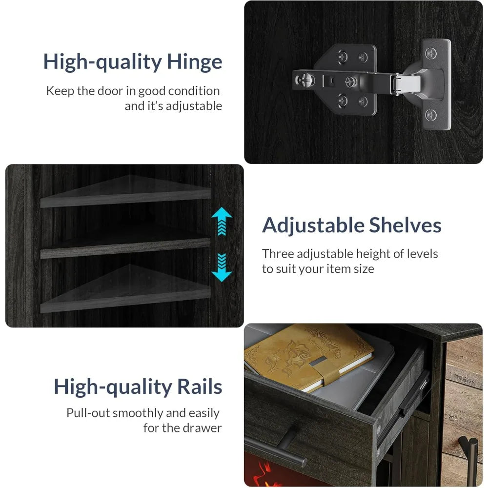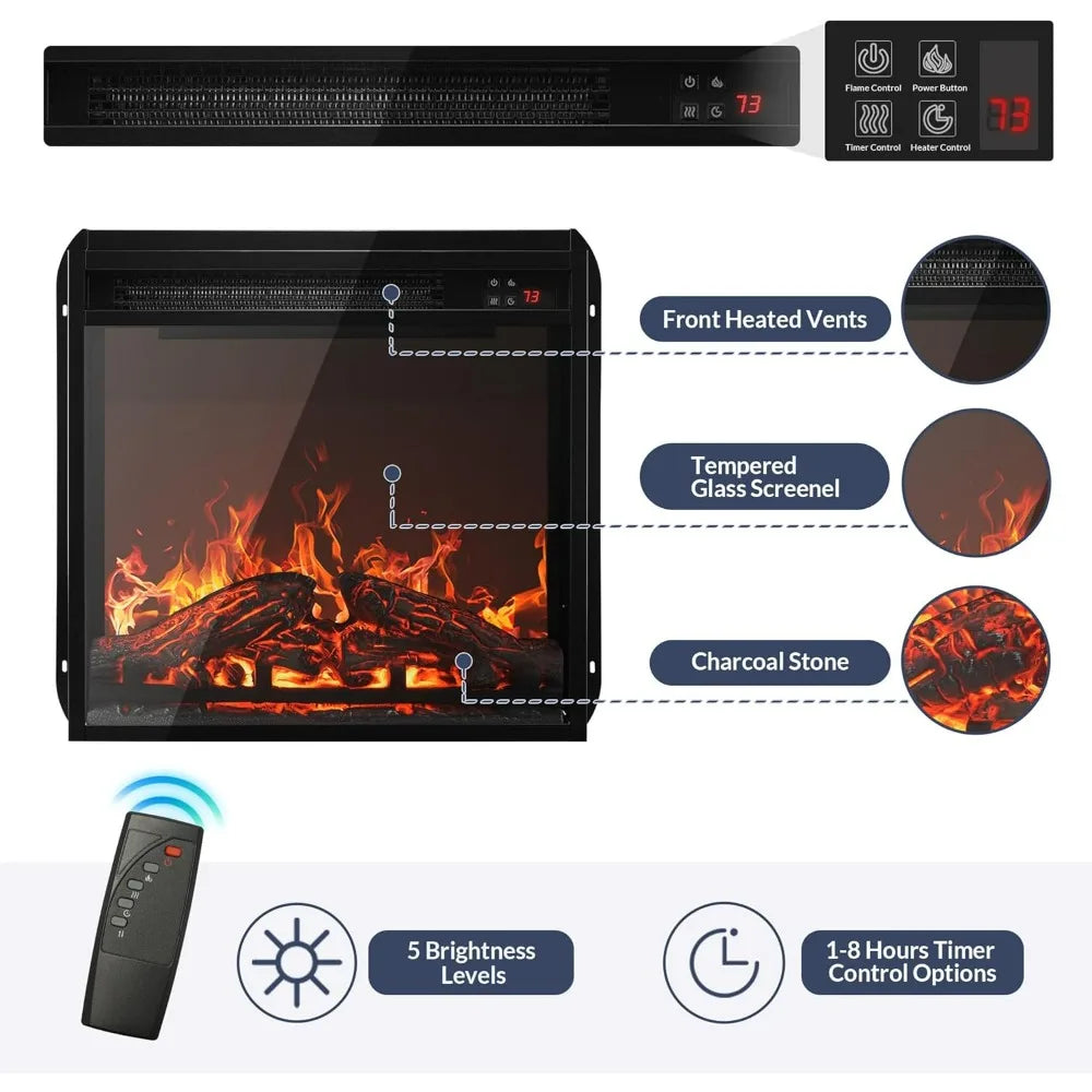 - Integrated Electric Fireplace: Enjoy cozy evenings with the 18-inch electric fireplace capable of warming spaces up to 400 square feet. Adjustable temperature settings from 64°F to 82°F allow you to create your perfect environment.