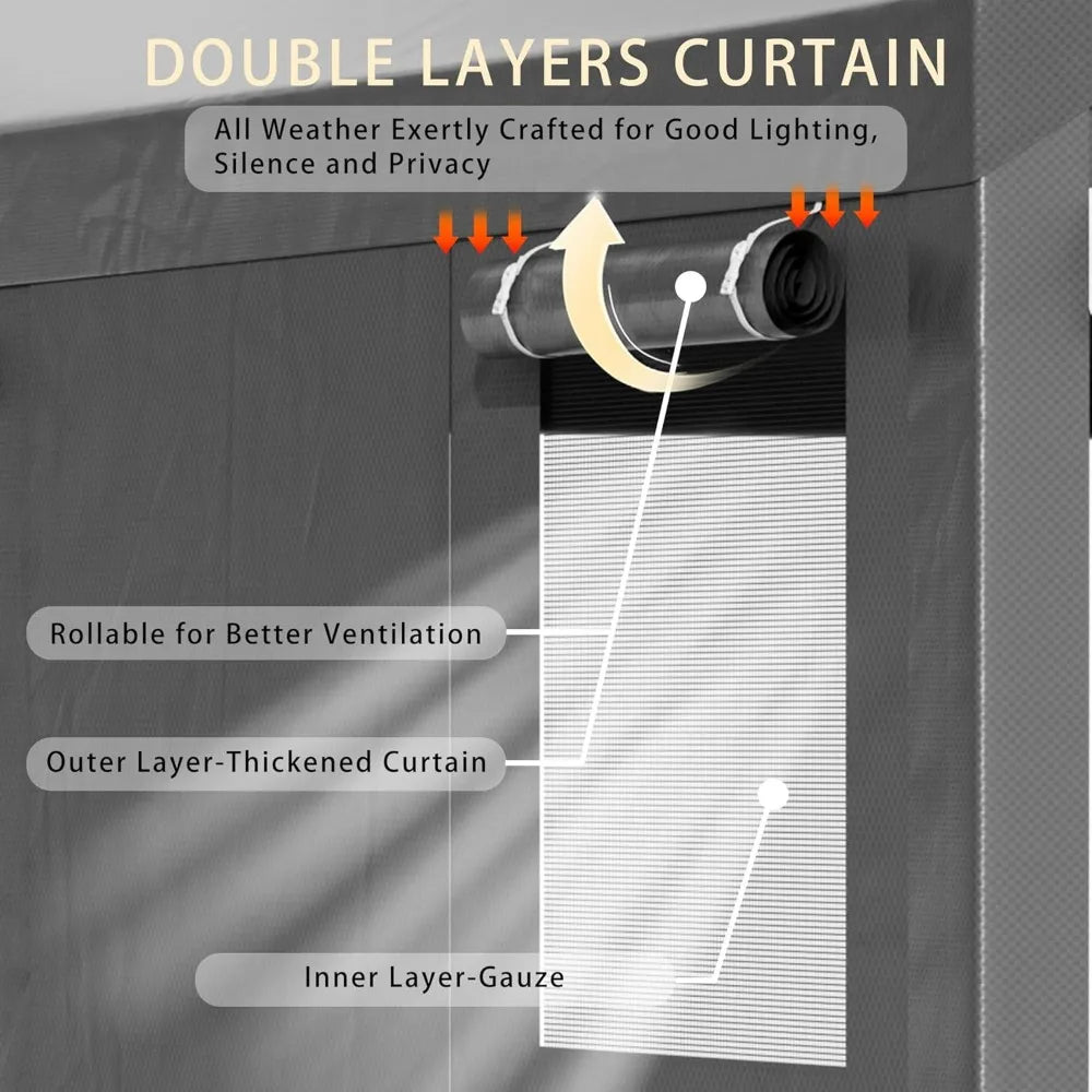 - Removable Sidewalls and Doors: Enjoy customizable airflow with roll-up windows and zippers for easy access.