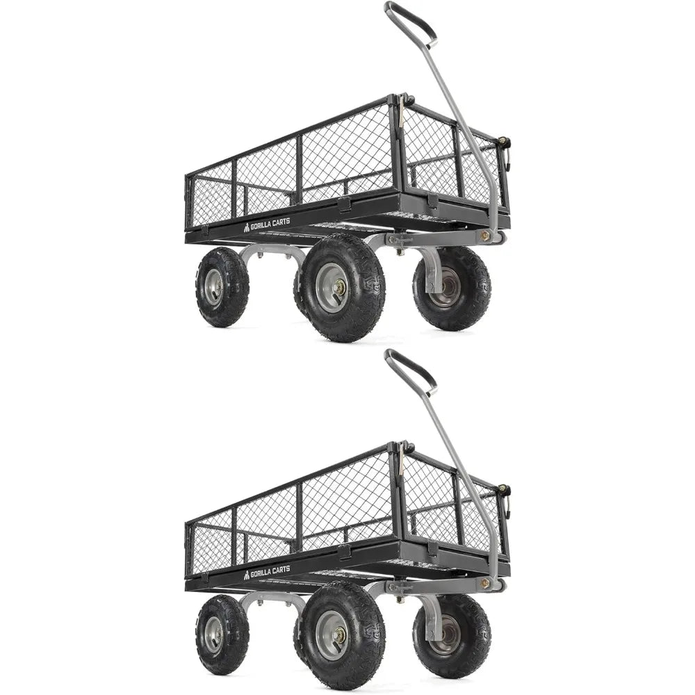 Heavy Duty Steel Mesh Utility Wagon Cart 800lb Capacity Outdoor Hauling