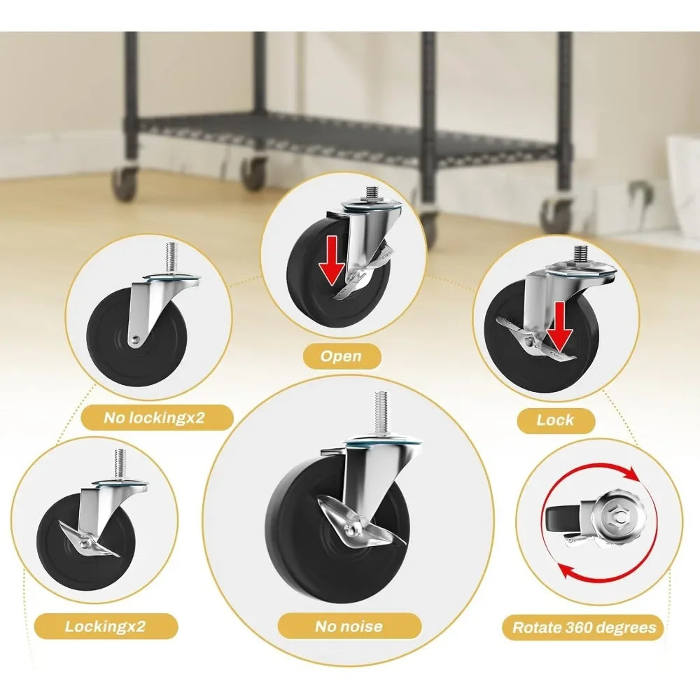 Heavy Duty Storage Shelves with Wheels 2000LBS Capacity 5-Tier 72 Inch