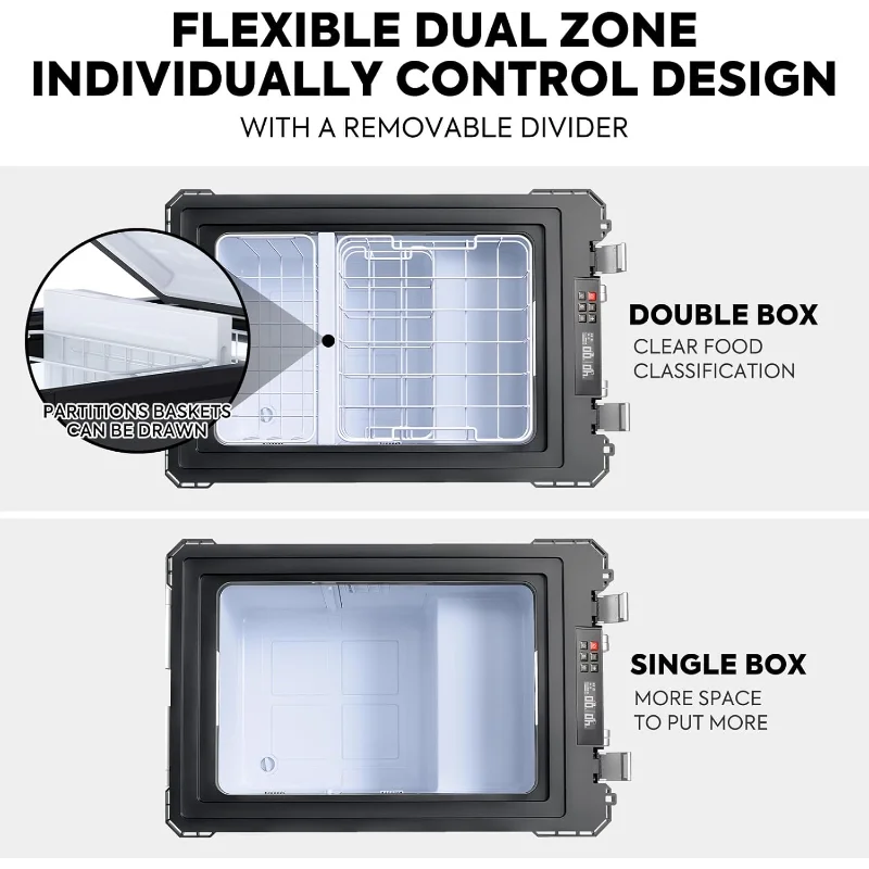 - Flexible Dual Zone Design: Switch between single and dual zone mode with a removable divider, allowing for two separate zones with independent digital controls.