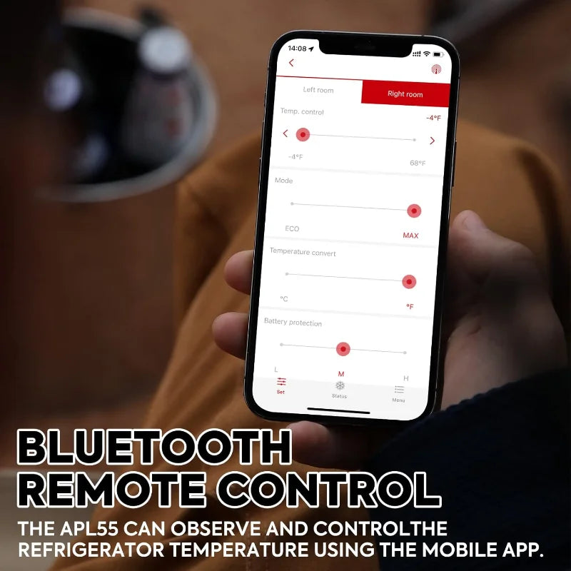 - Powerful SECOP Compressor: Cooling range from -4°F to 68°F (-20℃ to 20℃) with MAX mode for rapid cooling and ECO mode for energy efficiency, designed to function reliably even at a 40° tilt.