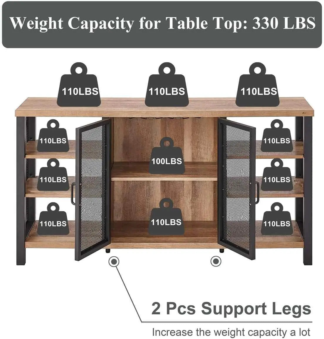 - Versatile Wine Bar Cabinet: Maximize your space with ample storage. The two mesh doors reveal a six-glass stemware holder and four removable wine racks, perfect for displaying your favorite vintages.