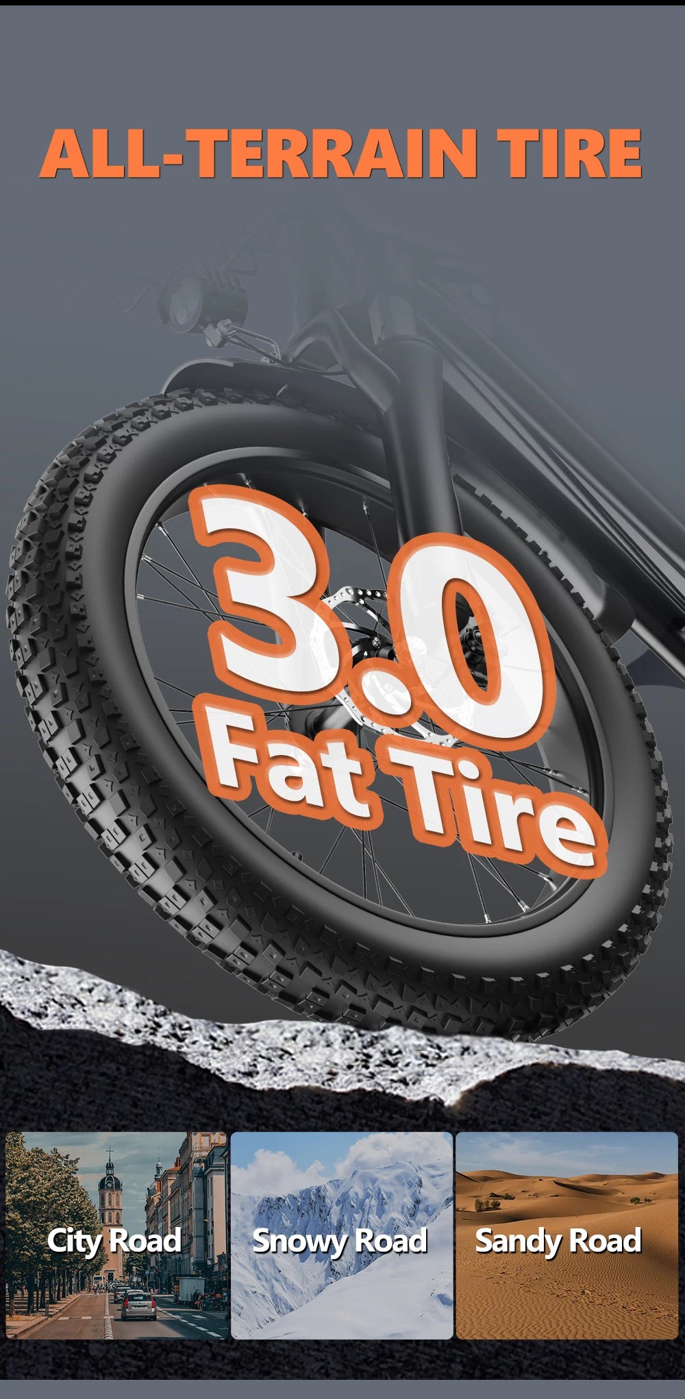 - Durable Design: Fat tires (20x4 inches) for stability on all terrains, including snow.