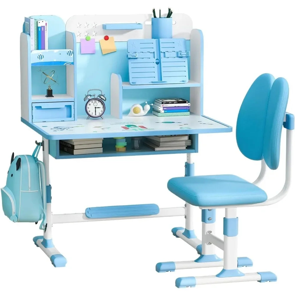 Kids Desk and Chair Set Adjustable Height with Storage for Learning
