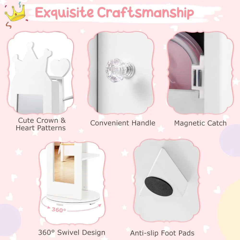- 360° Rotating Base: The swivel base allows children to easily access their essentials and find the perfect mirror angle for outfit checks.