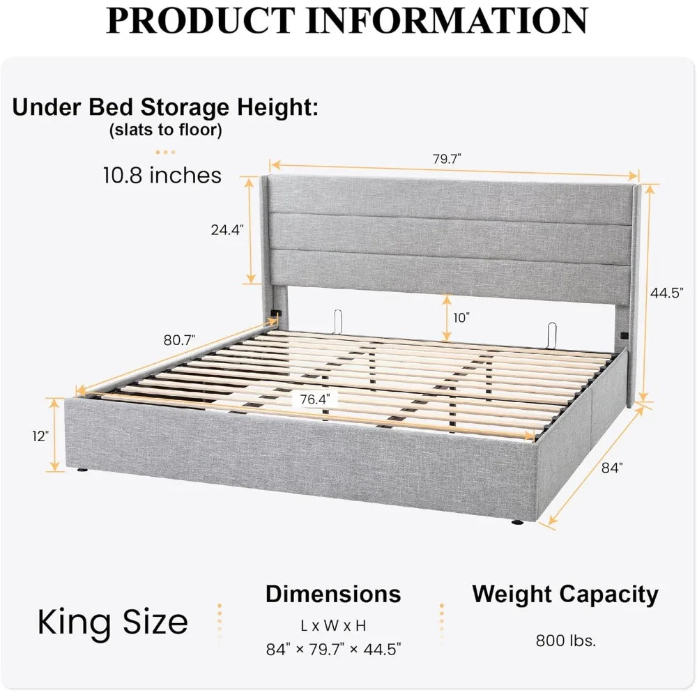 King Size Lift Up Storage Bed Modern Wingback Headboard Hydraulic