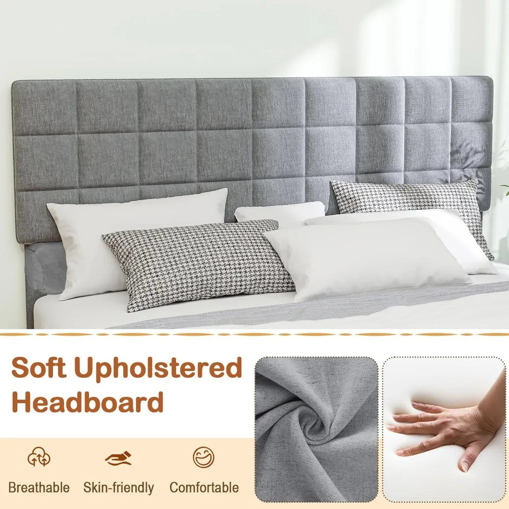 King Size Platform Bed Frame Adjustable Headboard Modern Linen