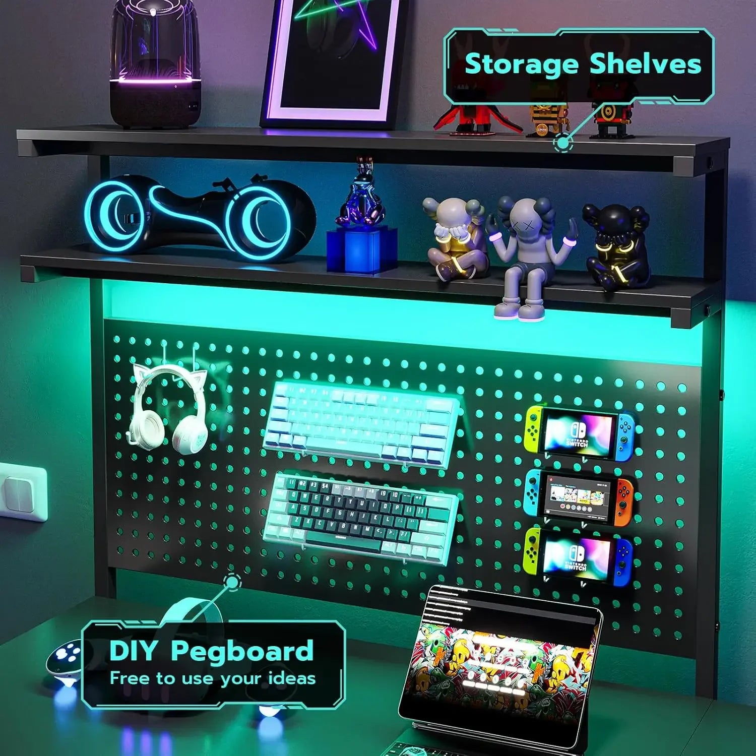 L Shaped Gaming Desk with LED Lights Hutch Monitor Stand Corner Table