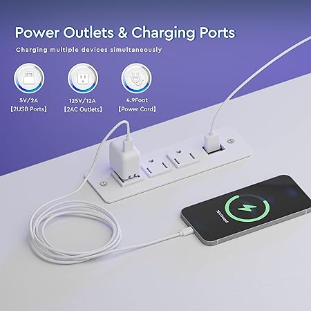 - Convenient Power Supply: Stay powered up with 2 AC outlets and 2 USB ports for seamless charging of your devices with a flexible 4.9ft power cord.