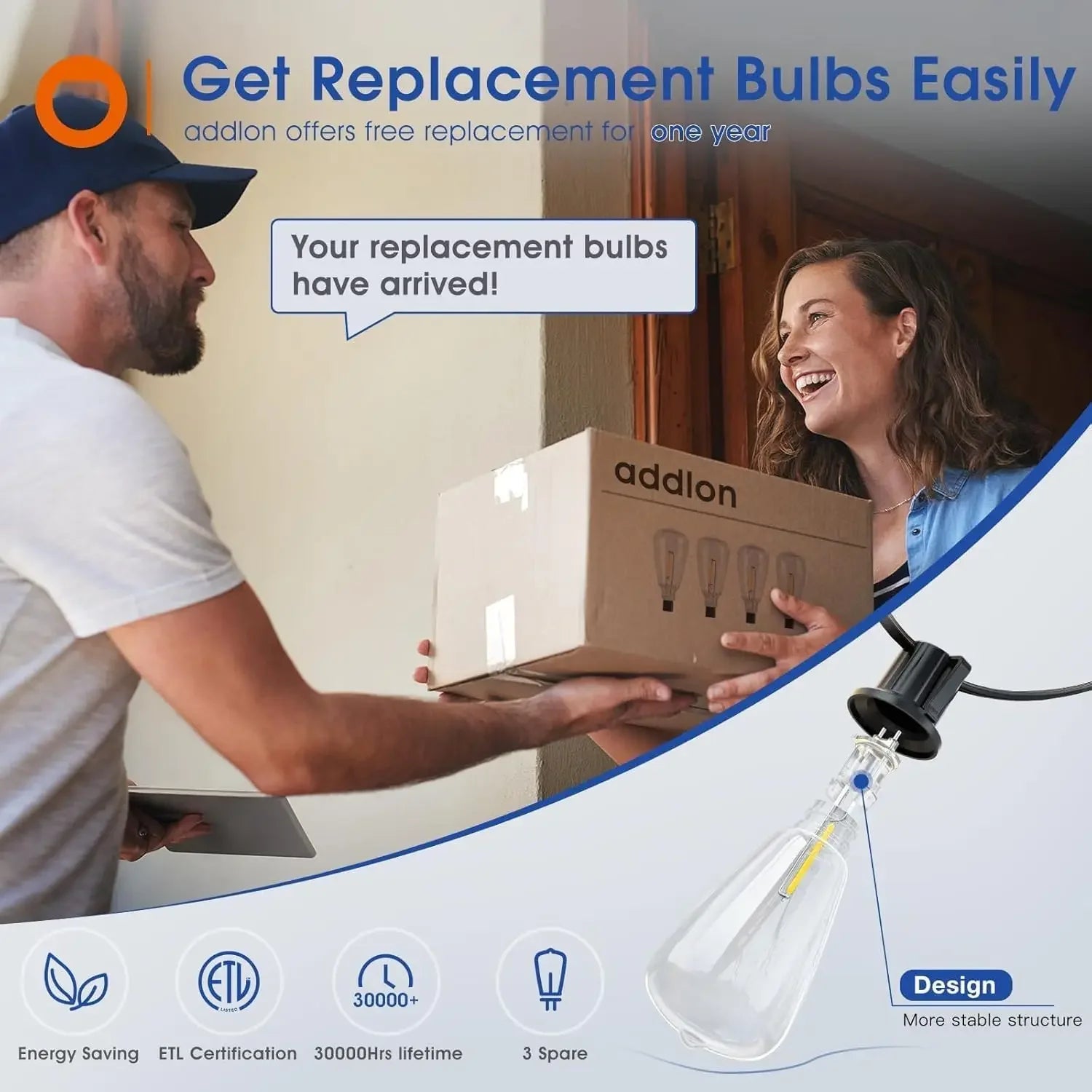 - Weather-Resistant Design: ETL-certified and IP65 rated, these lights withstand rain and shine, ensuring safety with shatterproof PET bulbs.