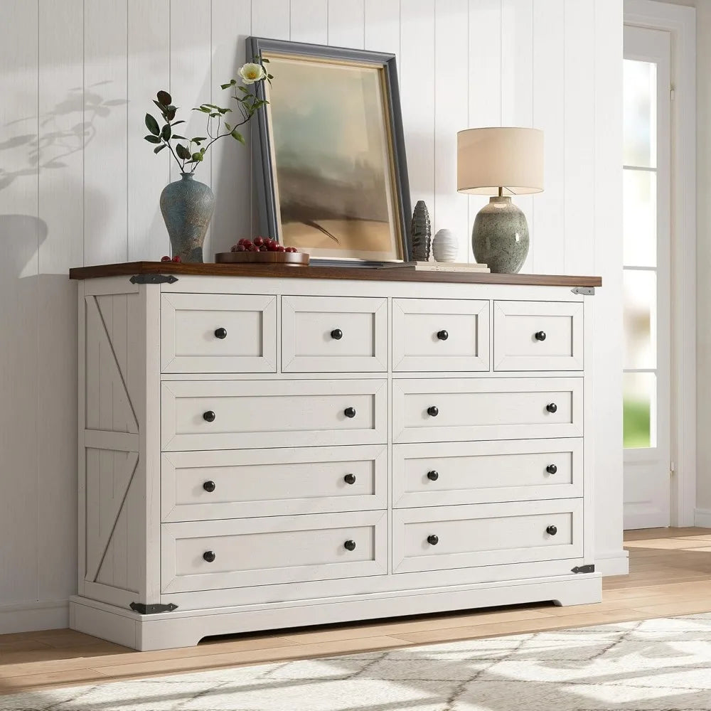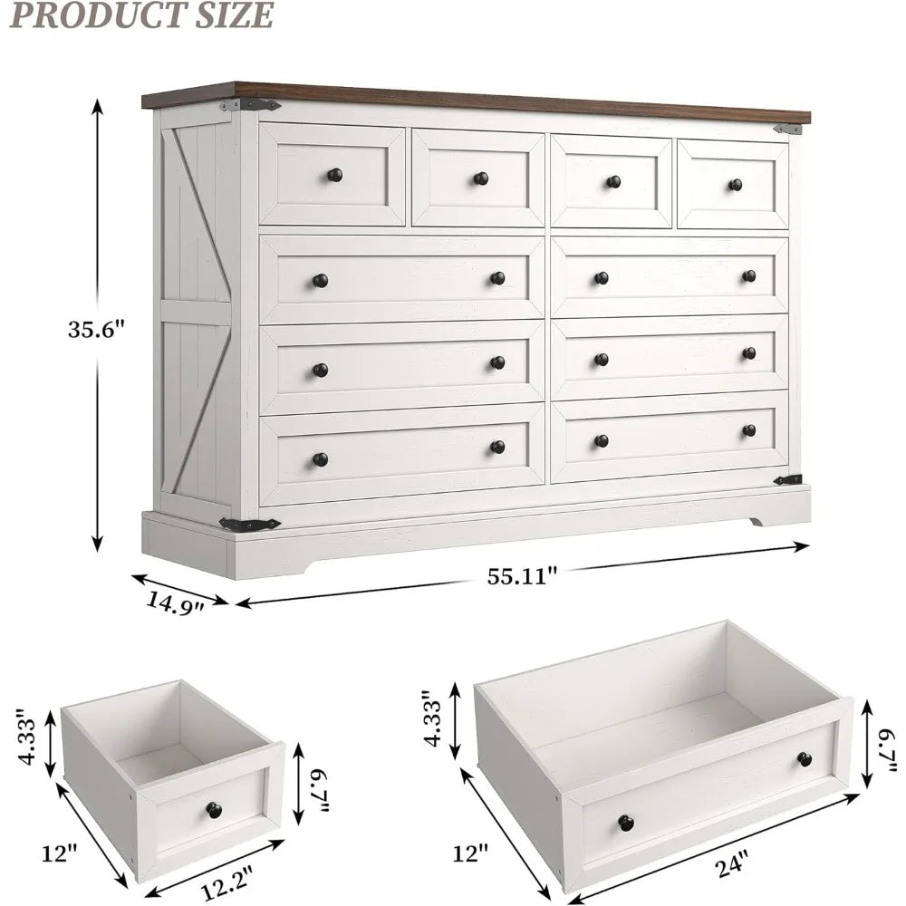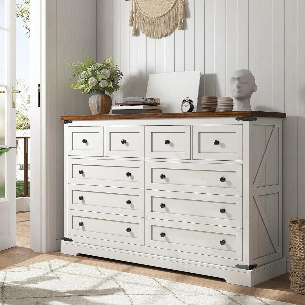 10 Drawer Dresser Farmhouse Modern Storage Chest Wide TV Stand