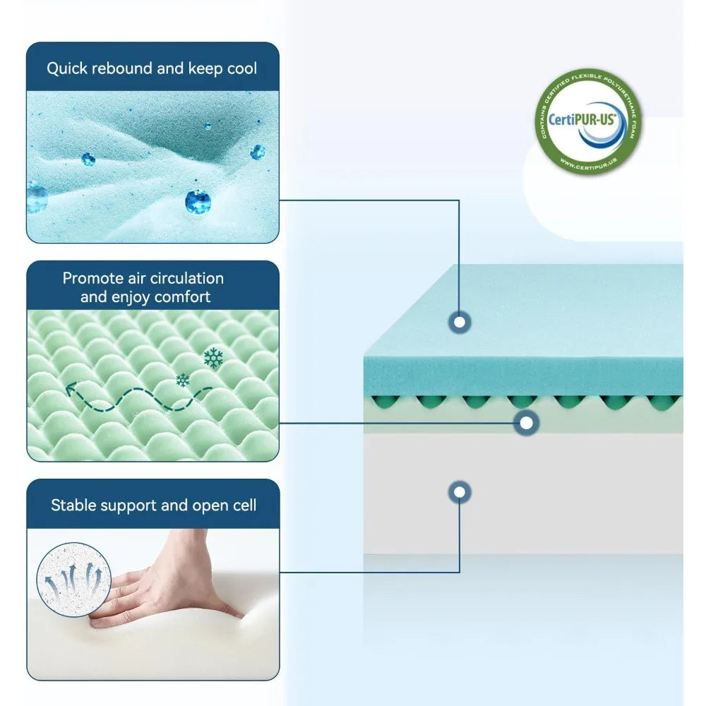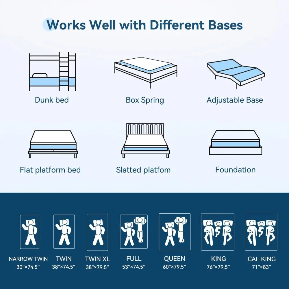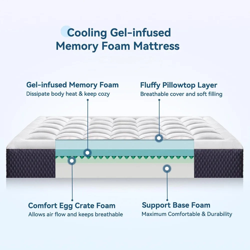 - Cooling Support: Our gel-infused memory foam adapts to your body, providing support while drawing heat away, ensuring a refreshing sleep experience.