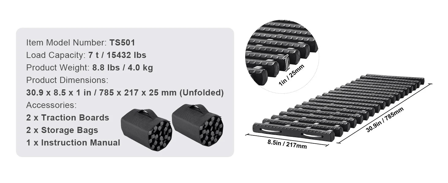 - Easy to Use: Simply clear the area, position the board under your tires, and drive out of trouble. Perfect for emergency situations!