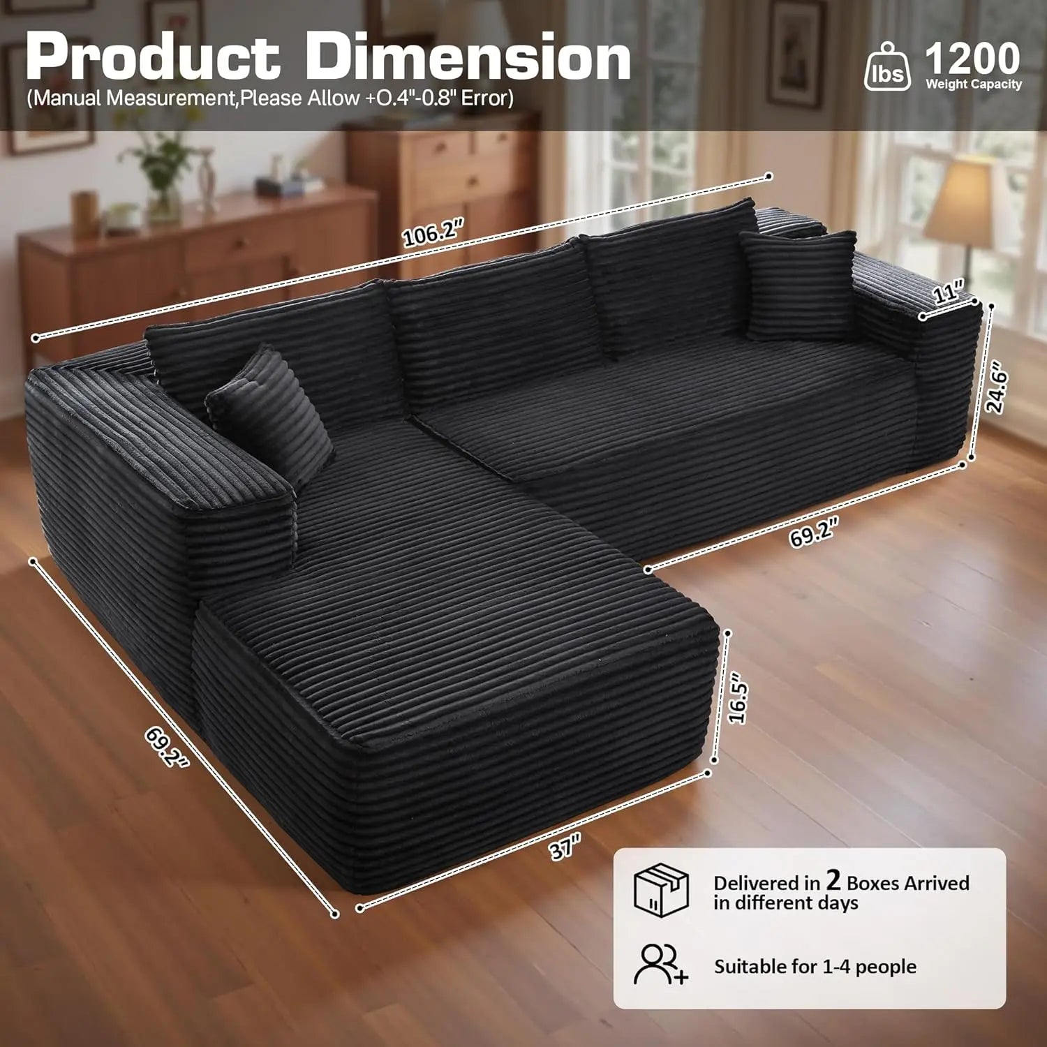 Ljustra 106" Modern L-Shaped Sectional Couch, Fluffy Corduroy Sofa, No Assembly Required