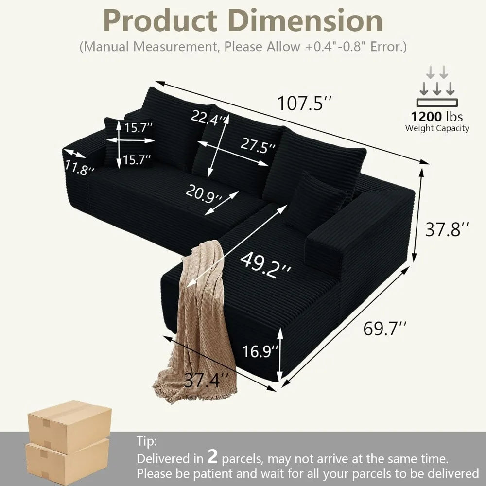107 Inch Modular Sectional Sofa L Shaped Cloud Couch for Living Room