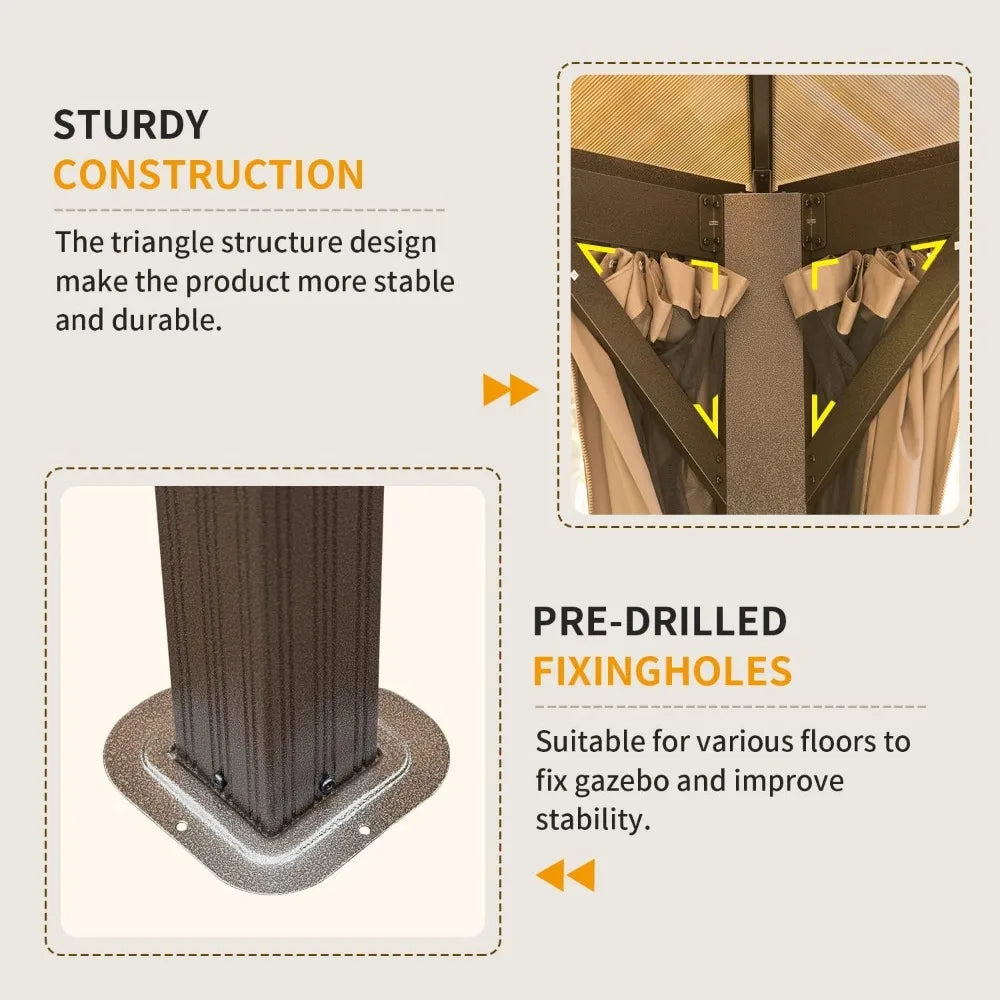 Elevate your backyard experience with the Ljustra 10' x 12' Hardtop Gazebo. Designed for both style and functionality, this gazebo offers the perfect blend of elegance and practicality.
