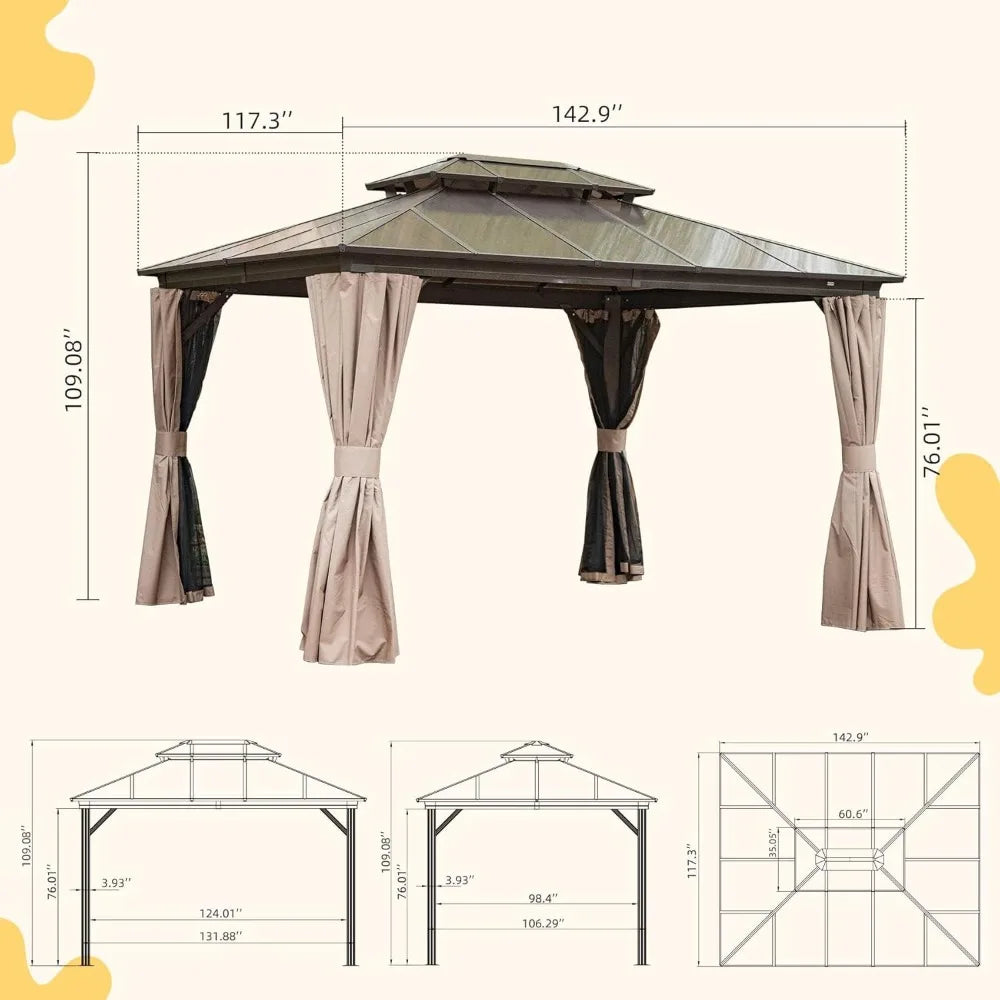 10x12 Hardtop Gazebo Aluminum Frame Curtains Netting All Weather Use
