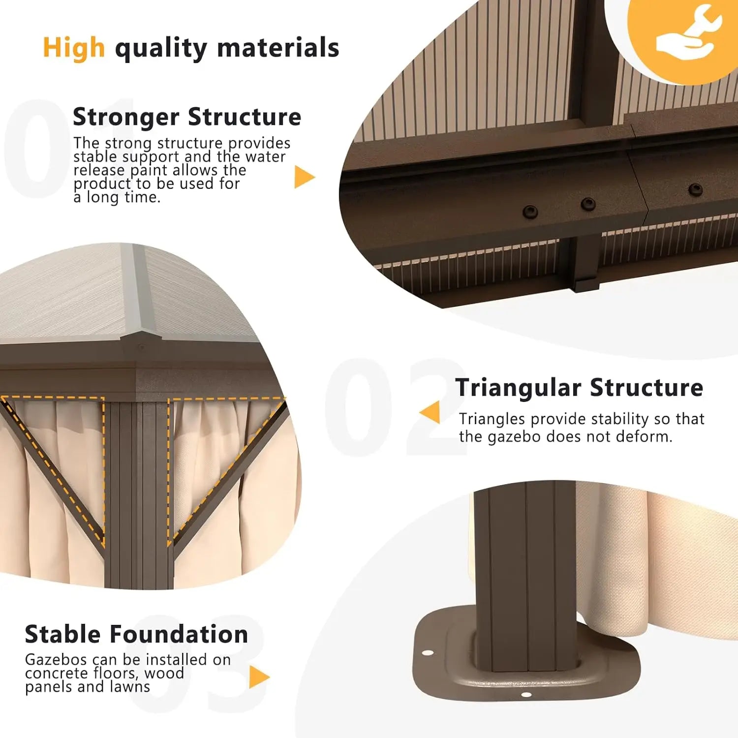 Elevate your outdoor gatherings with our stunning 10'x12' Hardtop Gazebo. This beautifully designed pavilion not only enhances your backyard but also provides a perfect shelter for family and friends to enjoy.