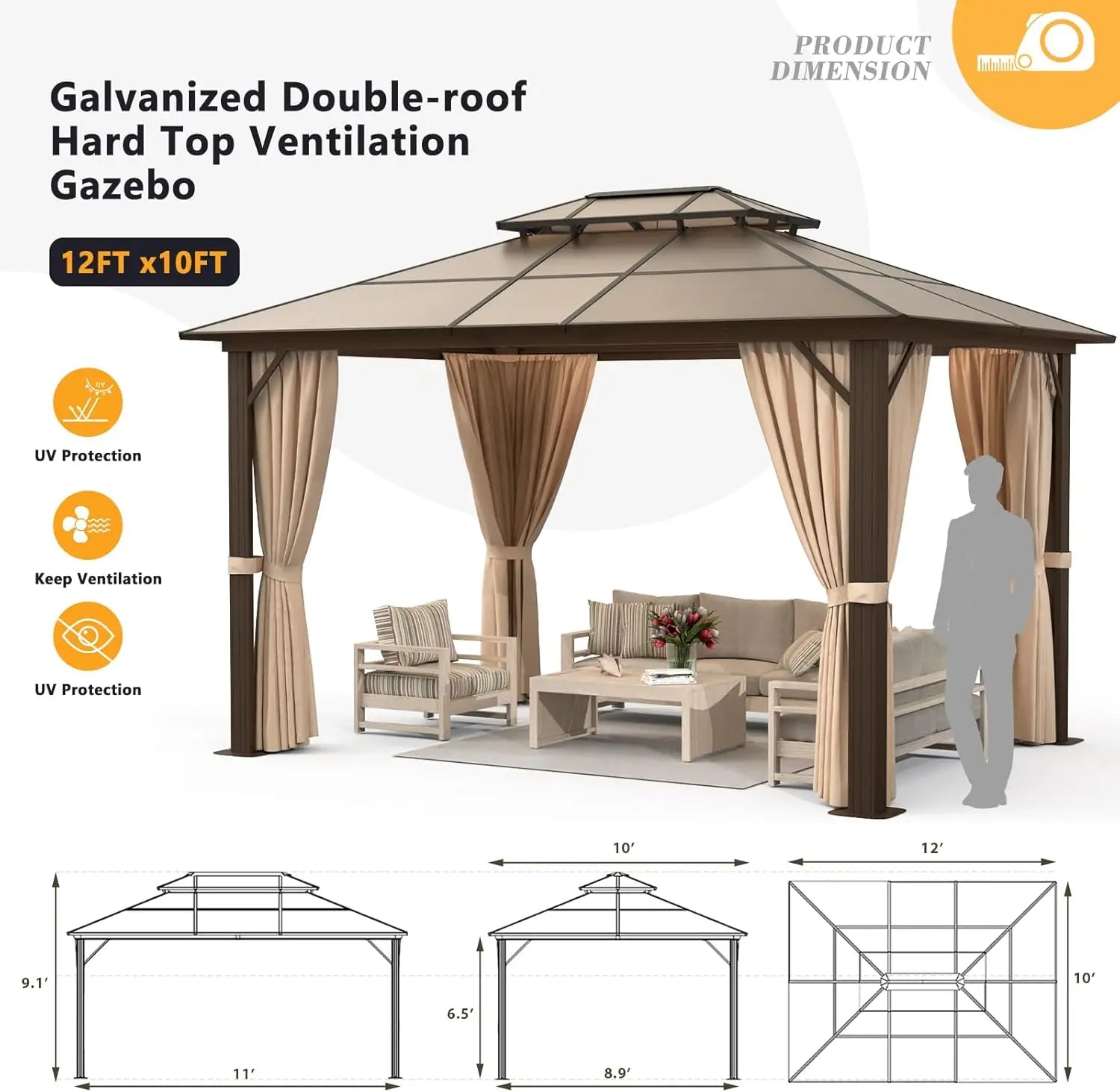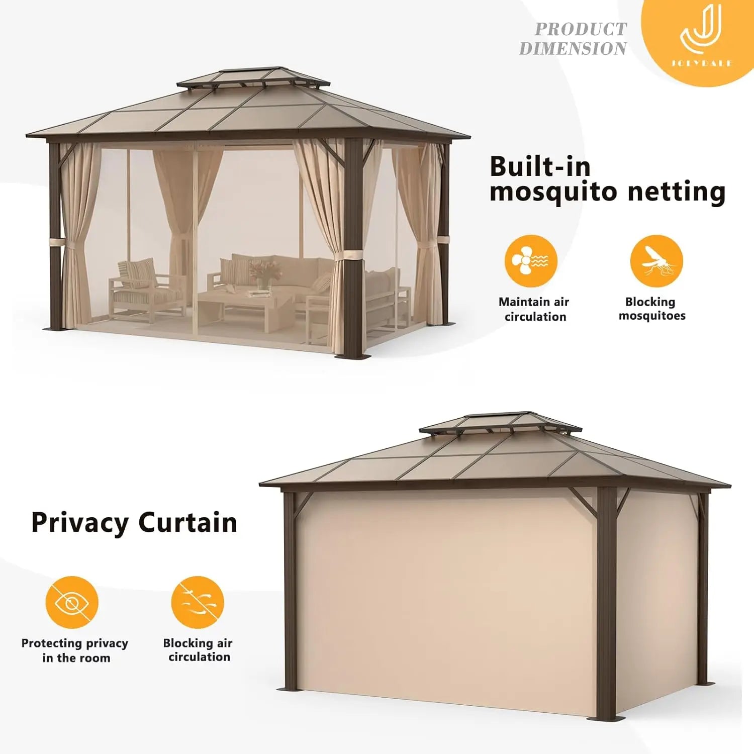 10x12 Hardtop Gazebo Aluminum Frame Pavilion with Netting Curtains Outdoor
