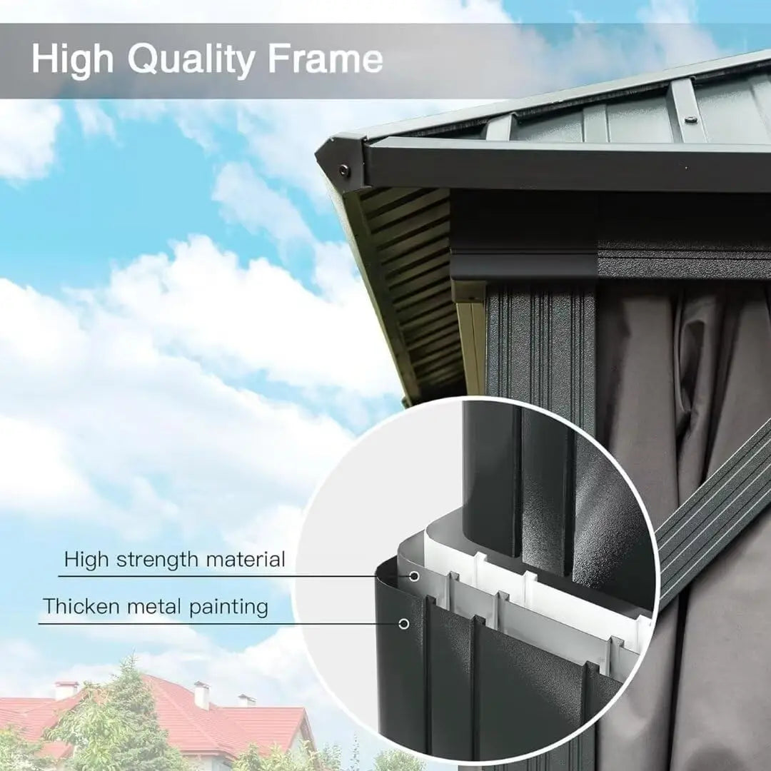- Durable Premium Material: Constructed with a powder-coated alloy steel frame, this gazebo resists fading, rust, and corrosion, ensuring long-lasting beauty and functionality.