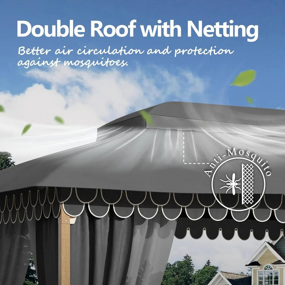 - Double-Roof Design: The elegant double-layered roof promotes airflow and prevents water accumulation, keeping your gatherings comfortable and dry.