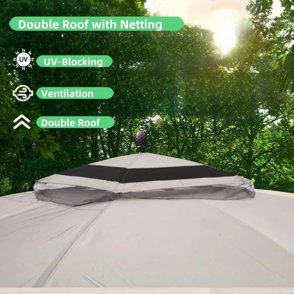 11x13ft Patio Gazebo with Curtains Sandbags Double Tier Roof Canopy