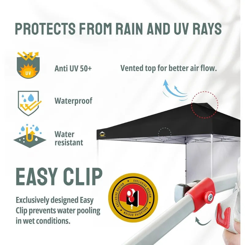 - EZ Clip Canopy Fabric: Innovative design prevents wind lift and rain pooling.