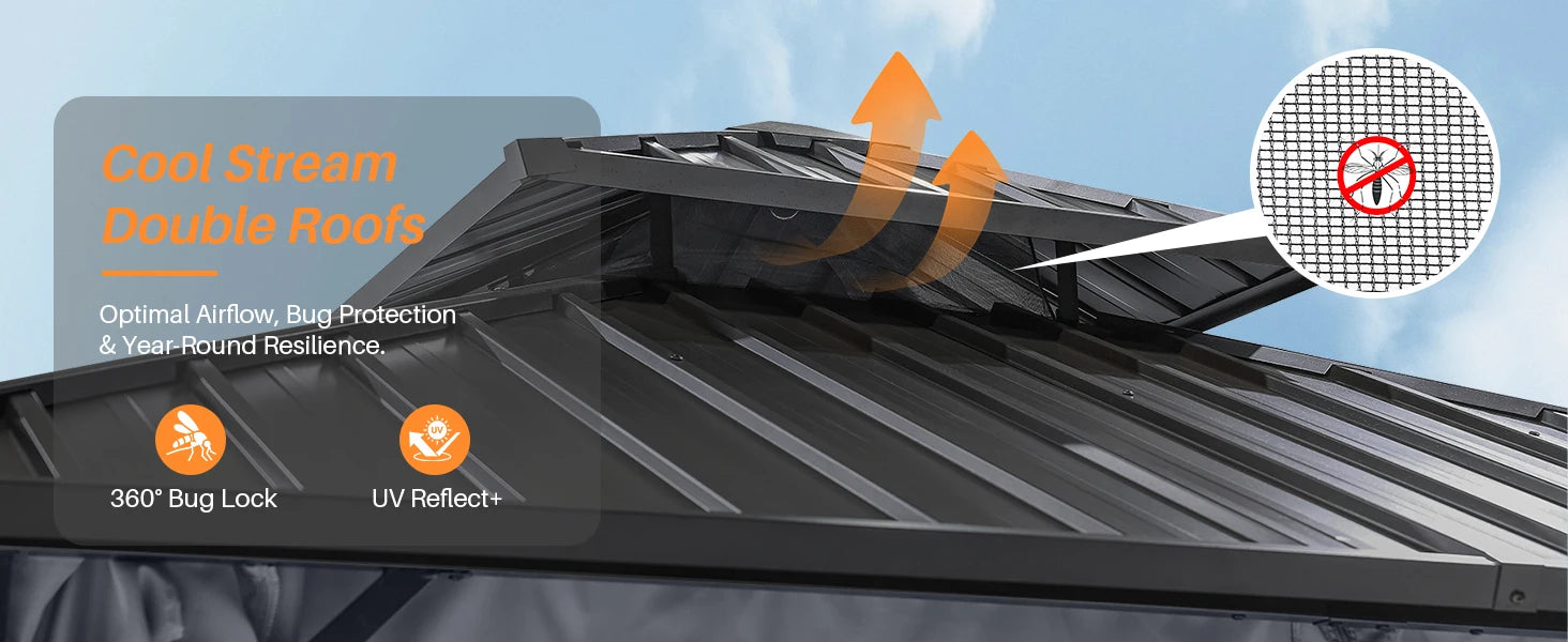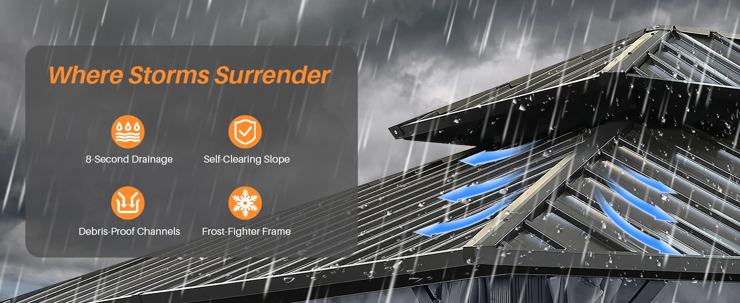 - All-Weather Steel Roof: Engineered with a double-layer steel roof that resists sun, rain, and snow, ensuring year-round durability.
