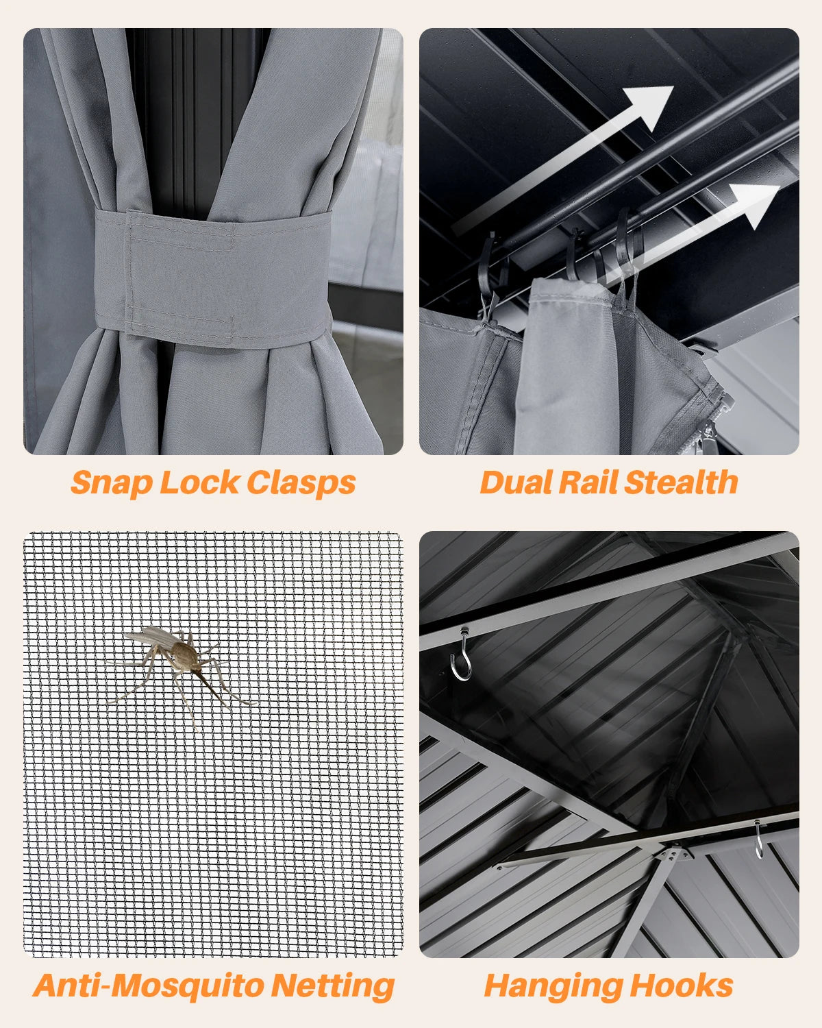 Ljustra 12x16 Outdoor Hardtop Gazebo Aluminum Frame with Netting Curtains