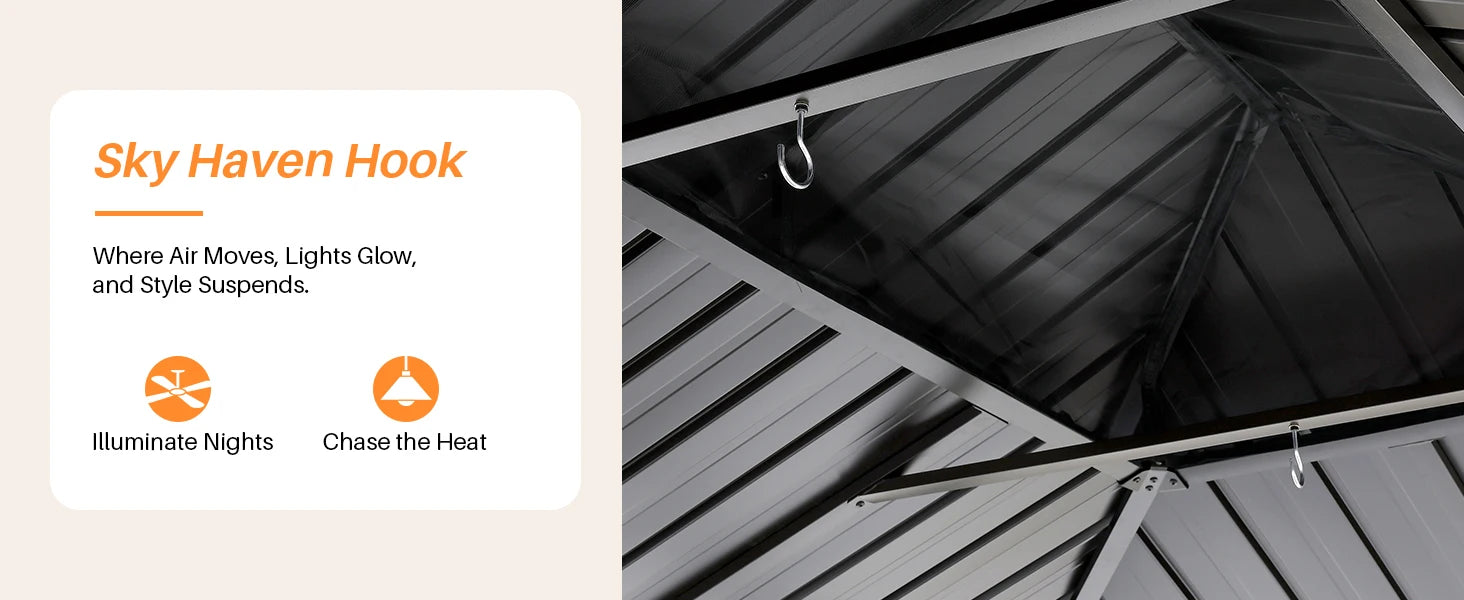 - Smart Features: Includes a built-in ceiling hook for hanging fans or lighting, enhancing your outdoor ambiance.