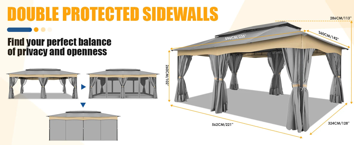 Enhance your outdoor experience with the Ljustra 12x20 Outdoor Gazebo – a stylish addition to your patio, backyard, or garden!