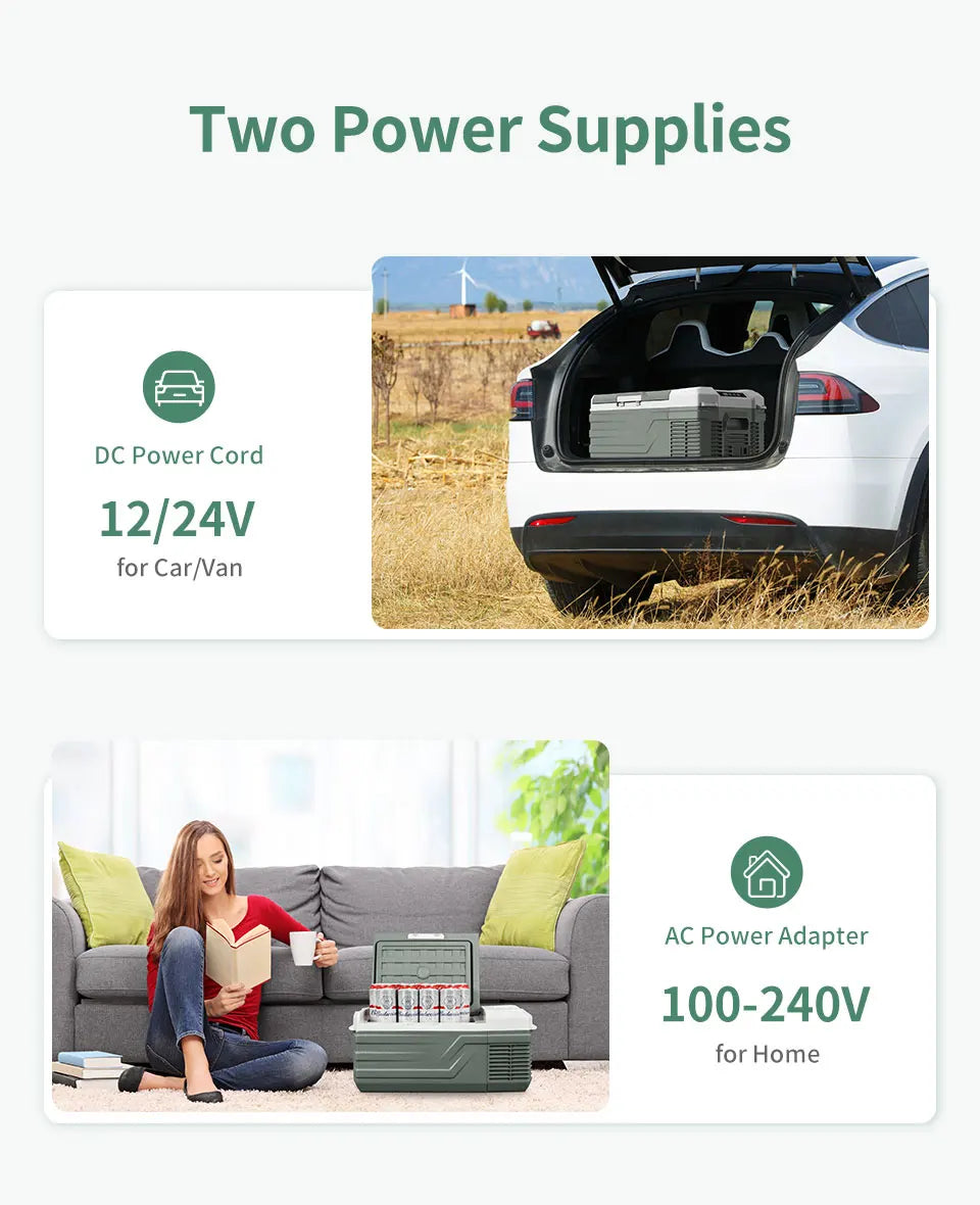 - Dual Power Options: Use at home or in your vehicle with 100/240V AC and 12/24V DC adapters, plus a battery protection system to prevent vehicle battery drain.