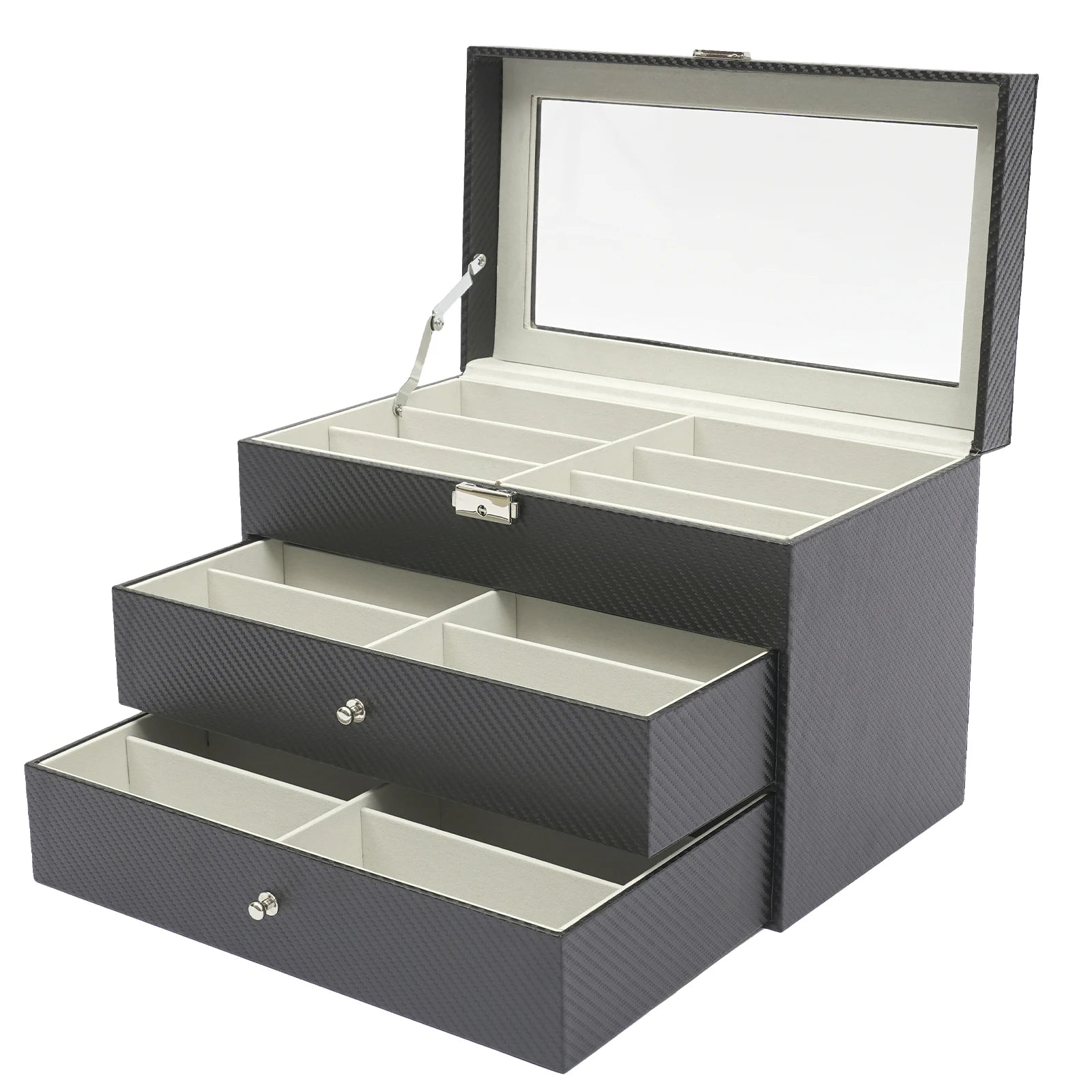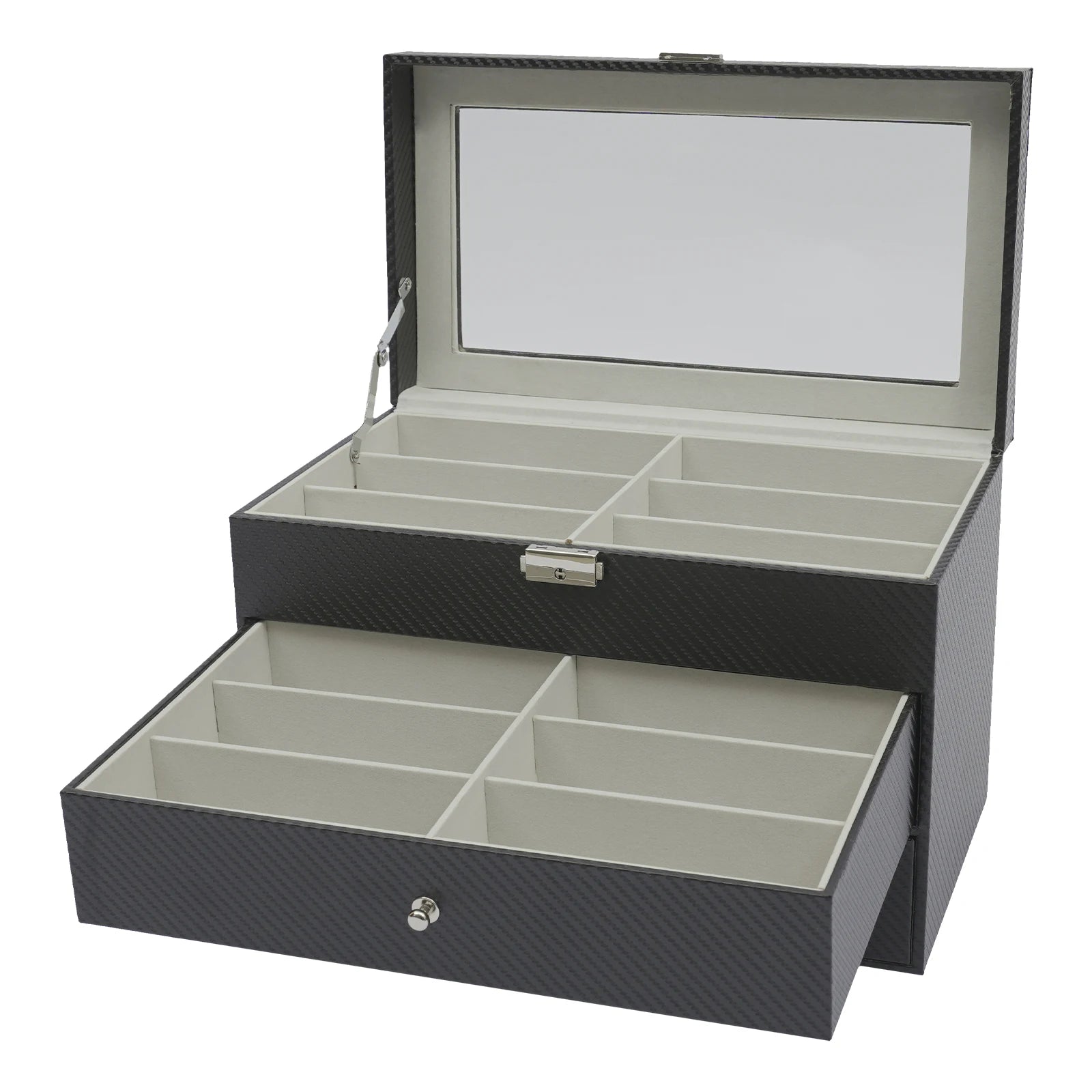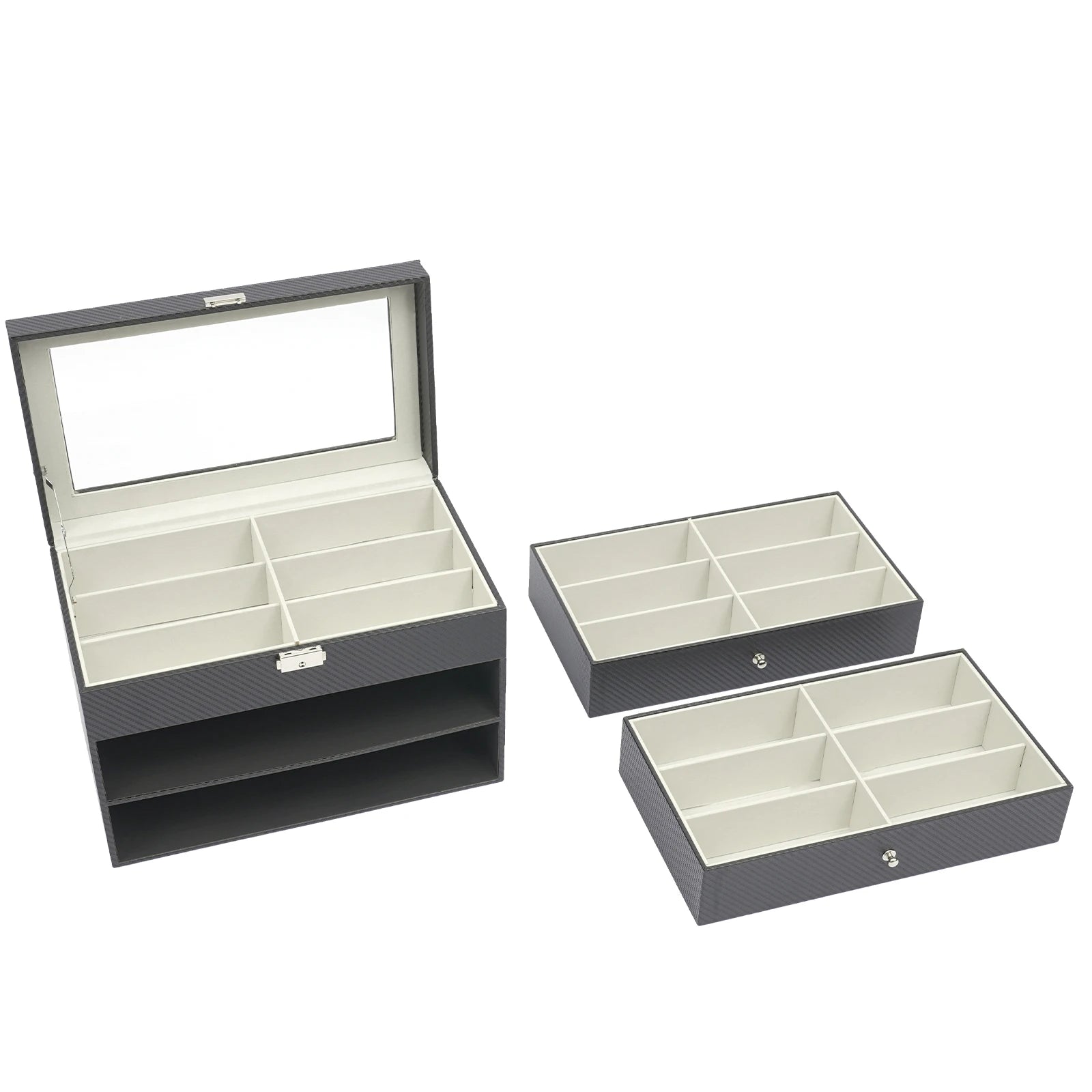 18-Grid Carbon Fiber Eyeglass Case Modern Sunglasses Storage Box