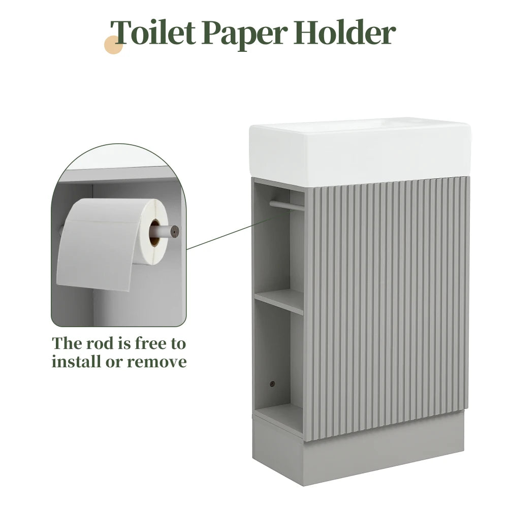 18.6 Inch Bathroom Vanity with Sink and Two-Tier Shelf Left Right Orientation