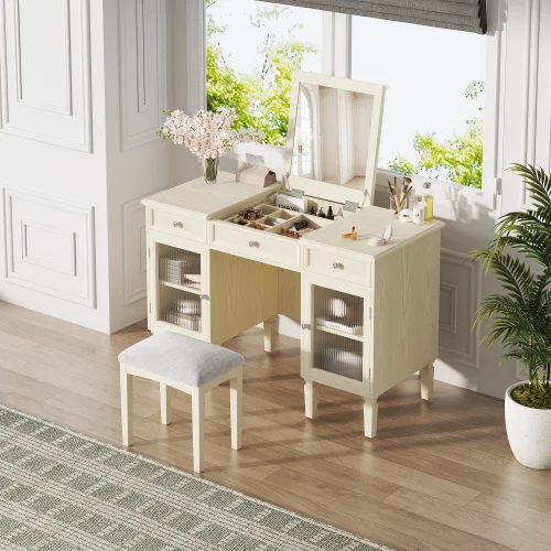 - Comfortable Stool Included: Comes with a stylish matching stool, featuring a soft padded seat for comfort during your beauty routine.