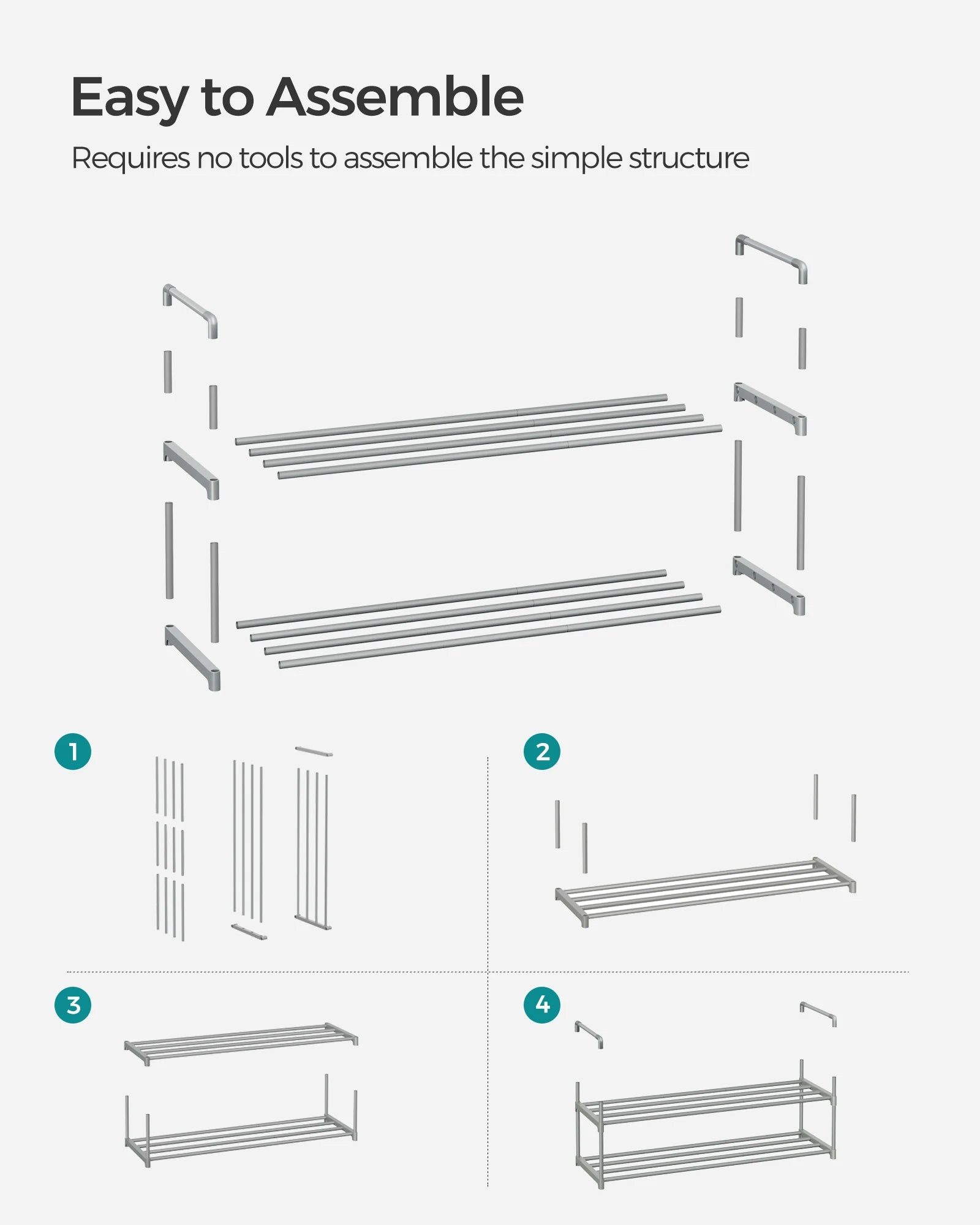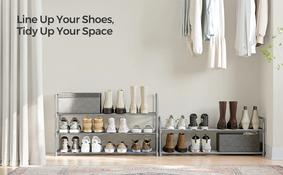 - Sturdy and Reliable: Constructed from thick metal tubes and quality plastic connectors, each tier holds up to 22 lb, ensuring your shoes have a dependable home.