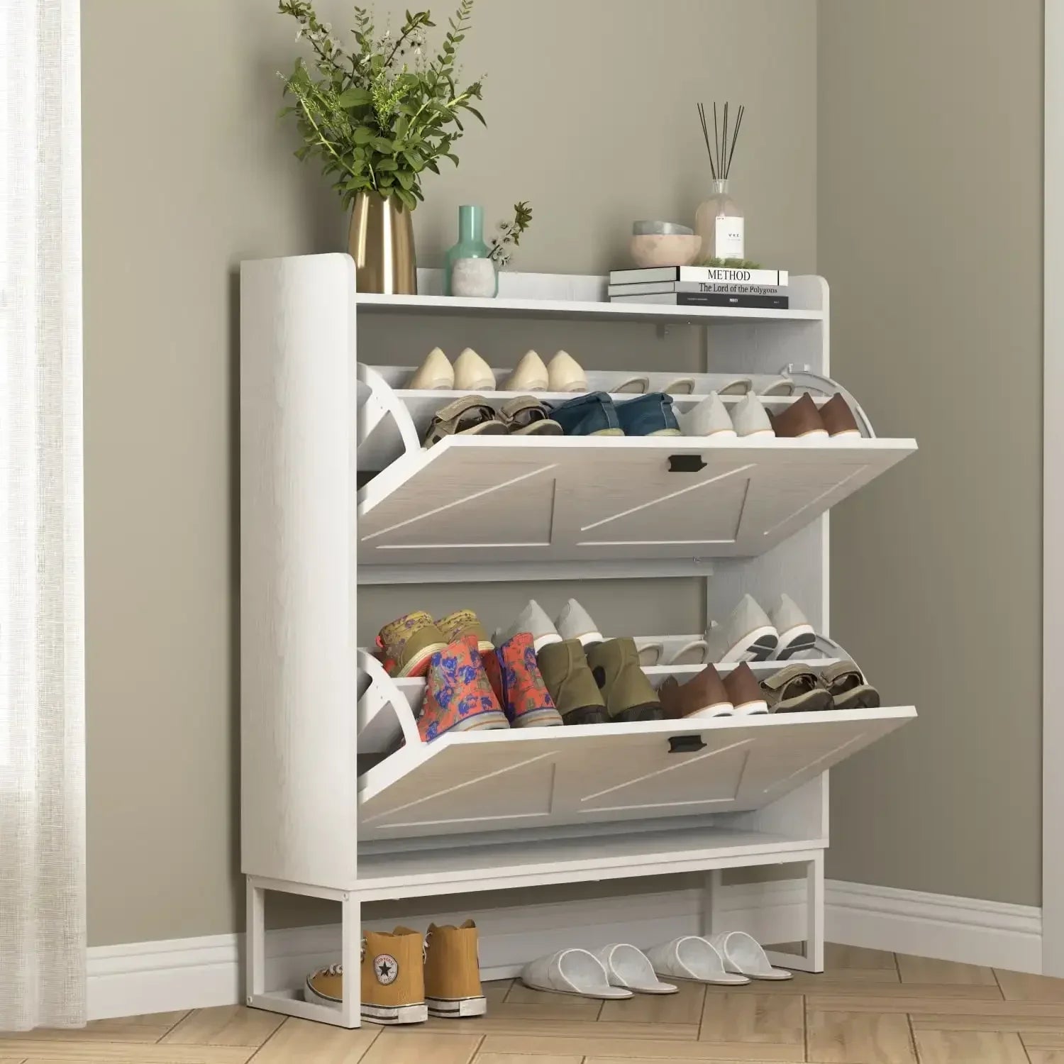 2 Tier Shoe Cabinet Storage Organizer for Entryway Hallway Living Room