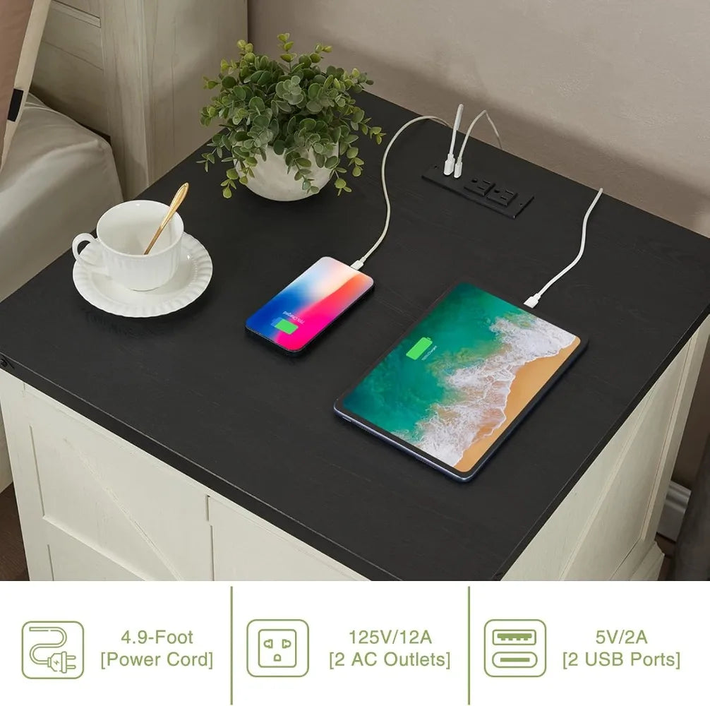 24 Inch End Table Set of 2 with Charging Station and Adjustable Shelves