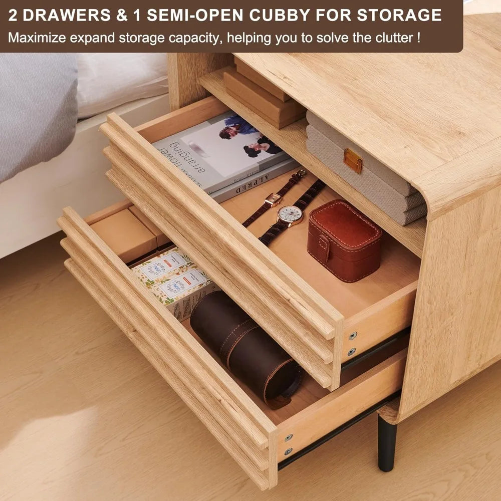 - Ample Storage Space: With 2 smooth-glide drawers and a semi-open top cubby featuring a cord cutout, this nightstand offers plenty of room for laptops, books, and daily necessities.