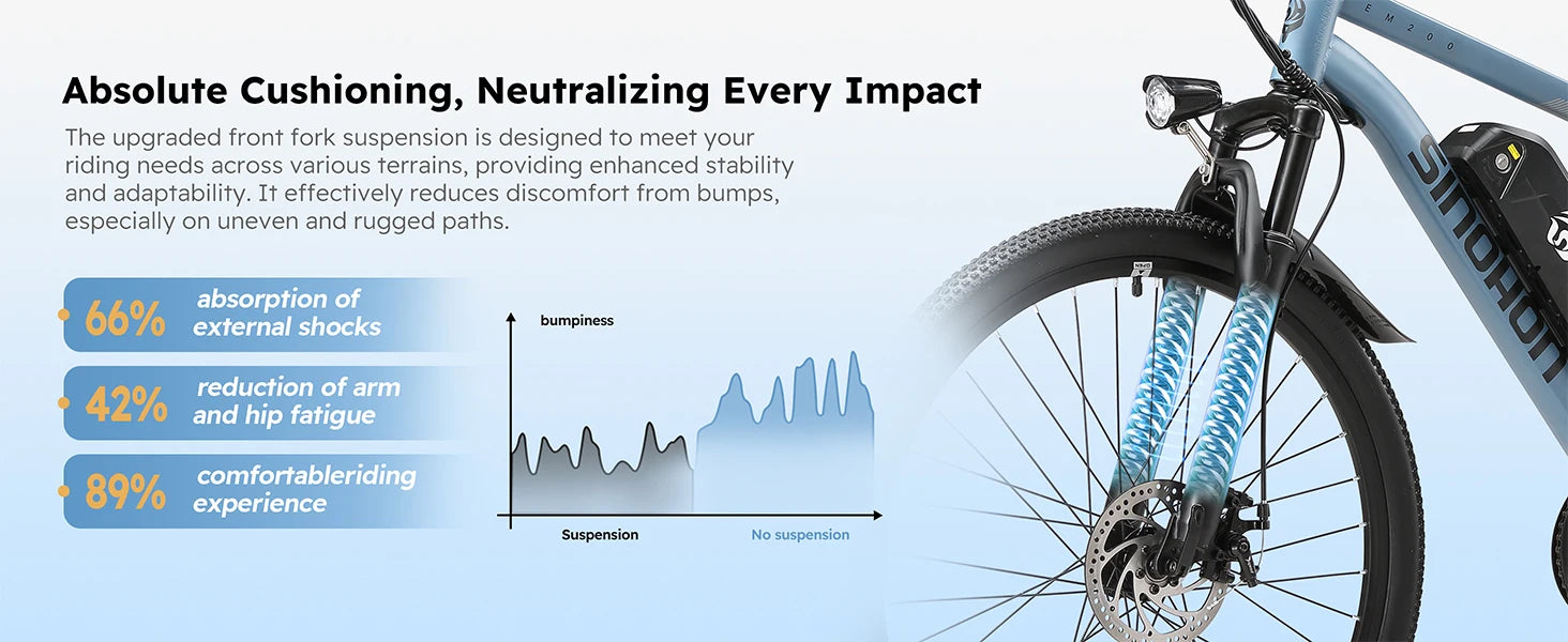 - 🛠️ Front Suspension: Enjoy a smooth ride on all terrains, absorbing shocks from uneven surfaces.