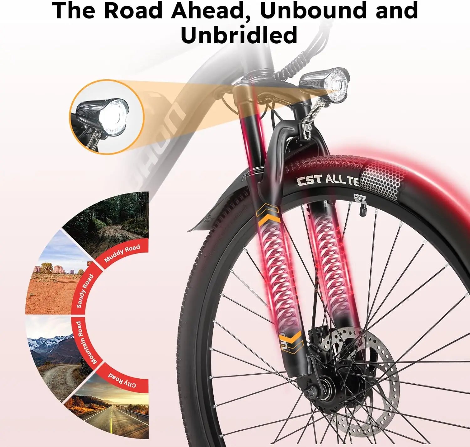 26" Electric Bike 500W Motor 375Wh Battery 20MPH 7-Speed Gears