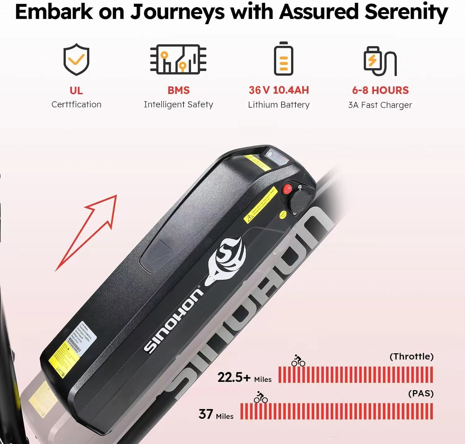 - 🔋 Long-Range 375Wh Lithium Battery: Ride up to 37 miles in pedal-assist mode, ideal for extensive rides.